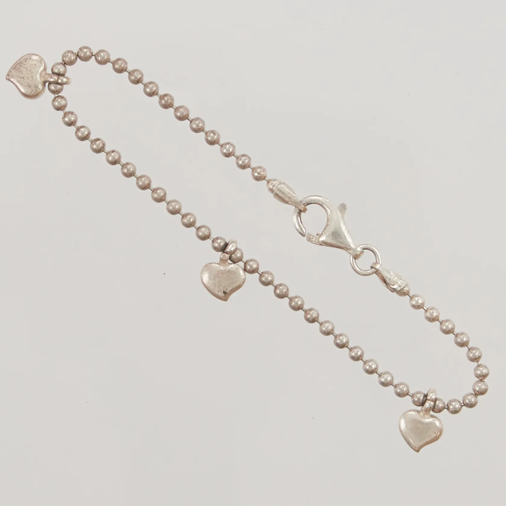Armband, kullänk med integrerade hängen hjärtan, 18,5cm, bredd: 2,5mm, 925/1000 silver, 7,8g. Vikt: 7,8 g.