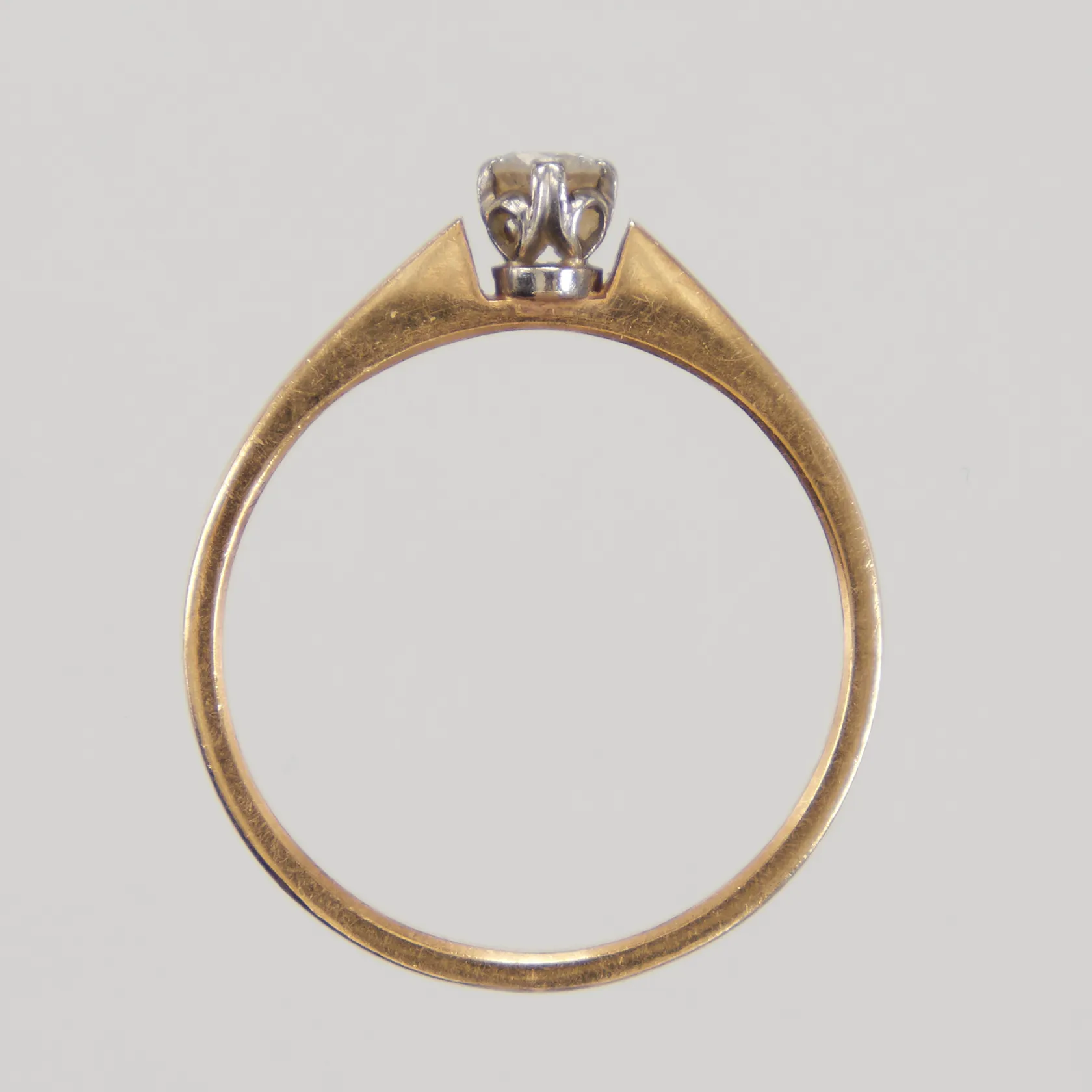 Ring med diamant 1x0,13ct stl 17, bredd 1,9-3,9mm, 18K, Vikt: 2,4 g.