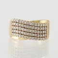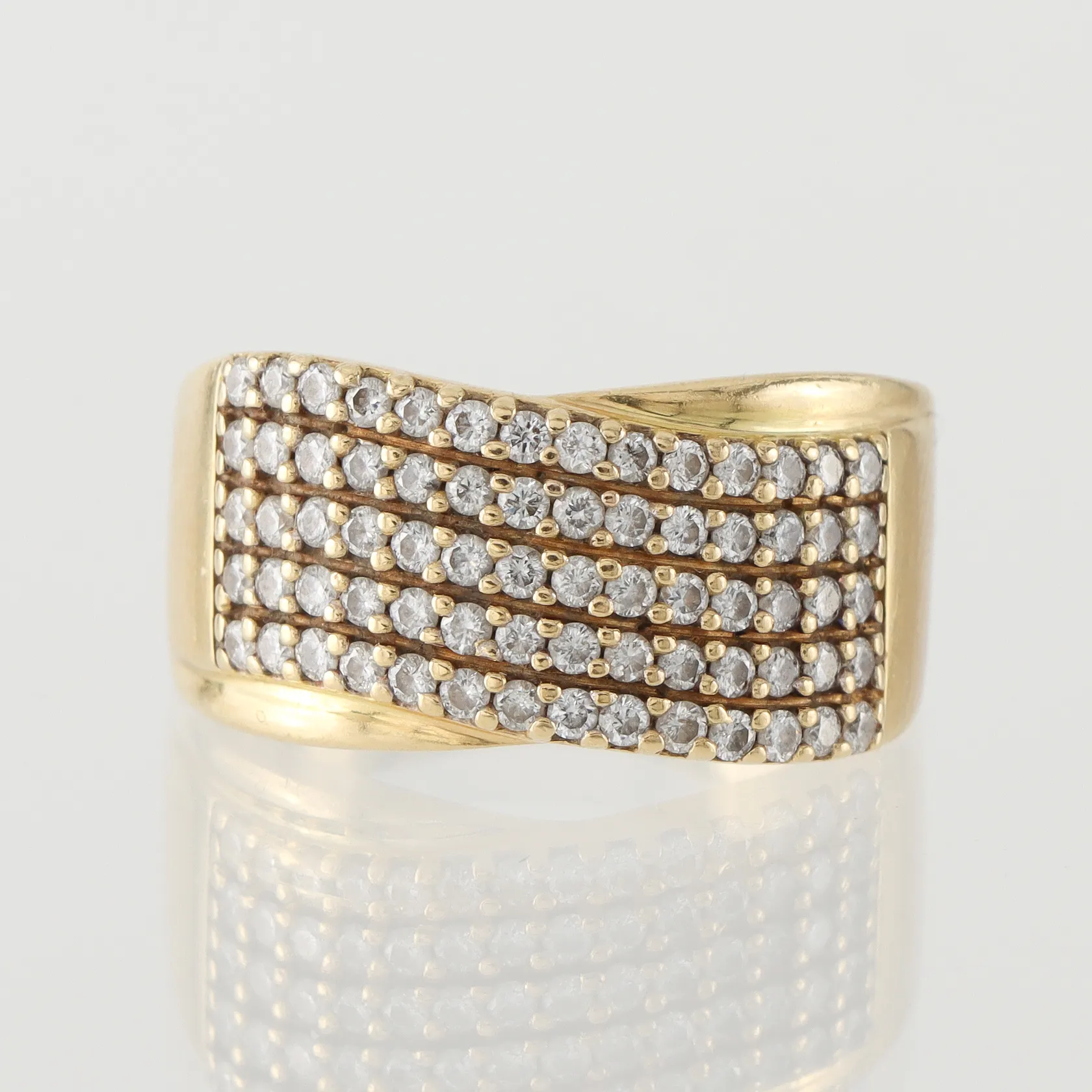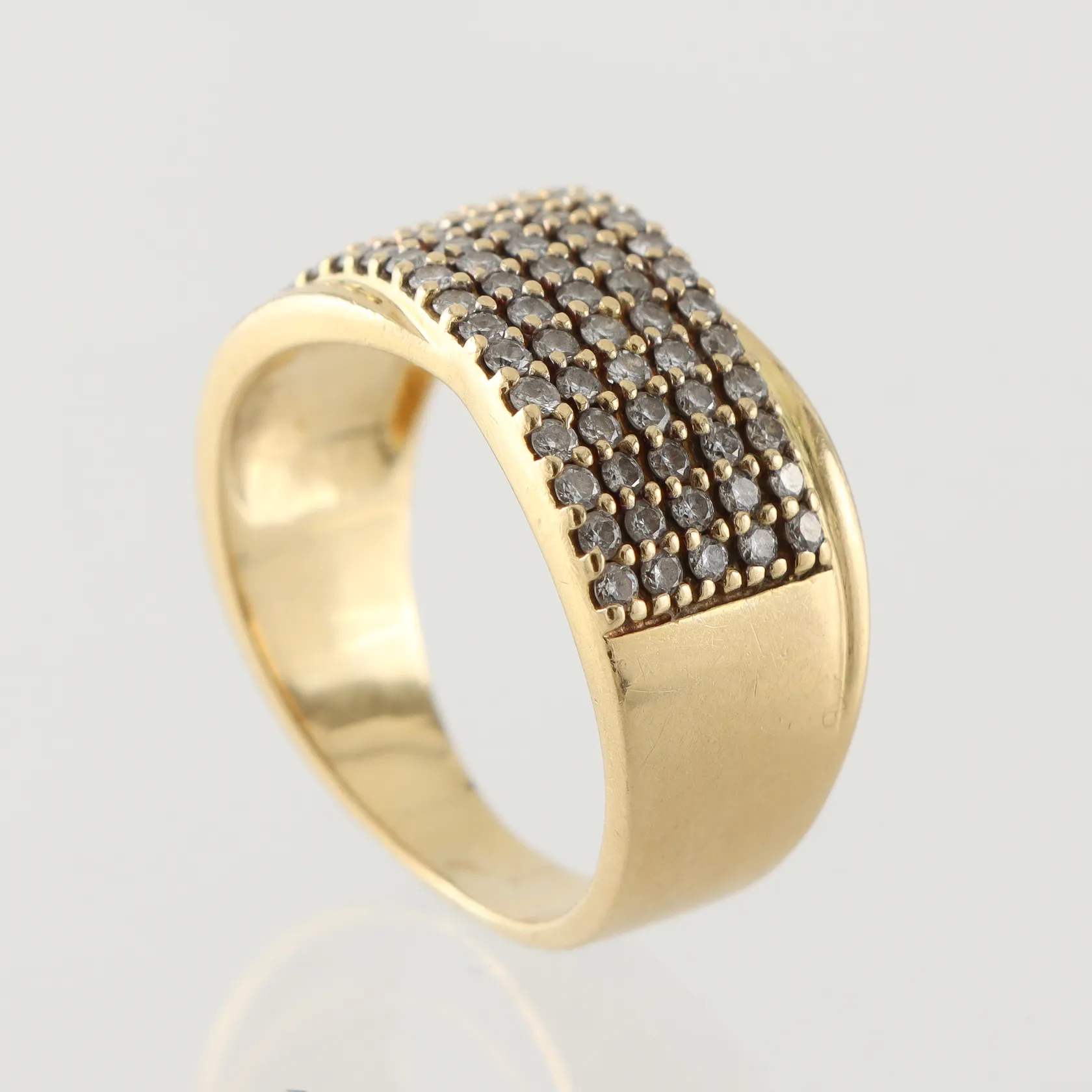 Ring med diamanter ca 75x0,015ct, storlek 19 ¾ mm, bredd 4.2-11.6 mm, 18k. Vikt: 9,6 g.