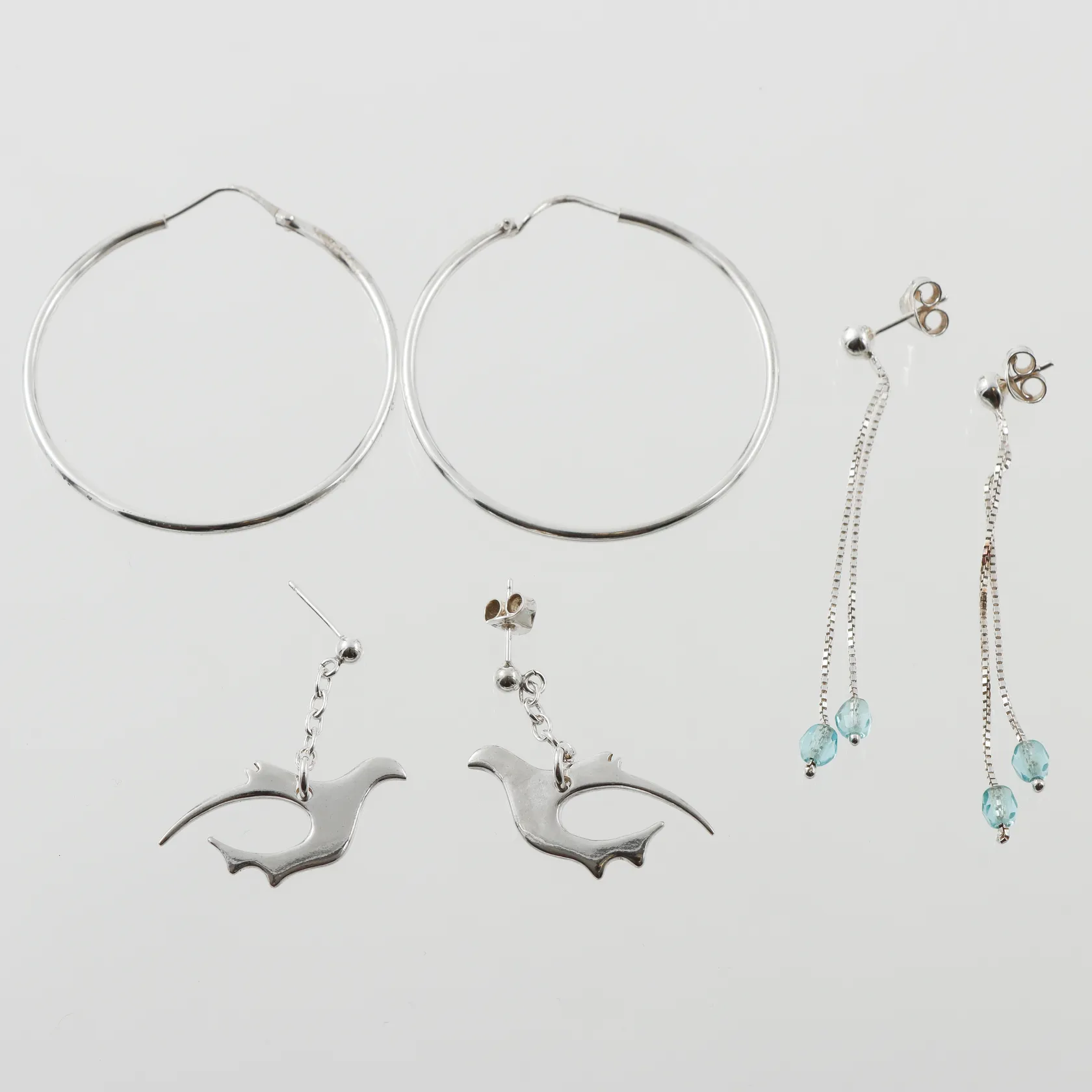 Örhängen 3st par, Ø ca 4mm, höjd ca 3-5mm, ett lås saknas och en pinne lite kortare, silver Vikt: 9,8 g.