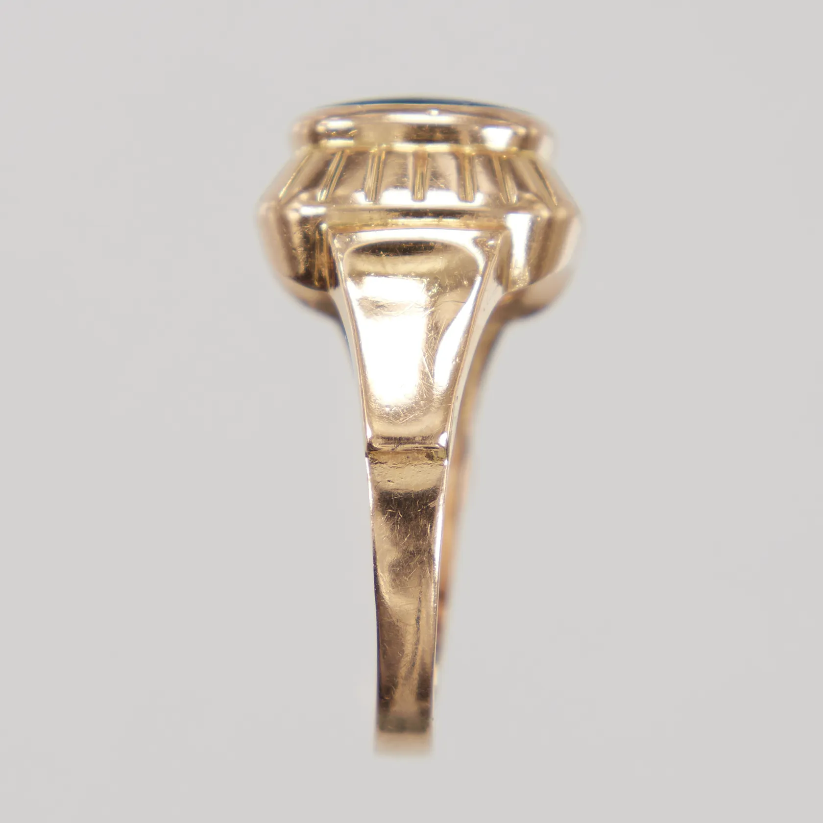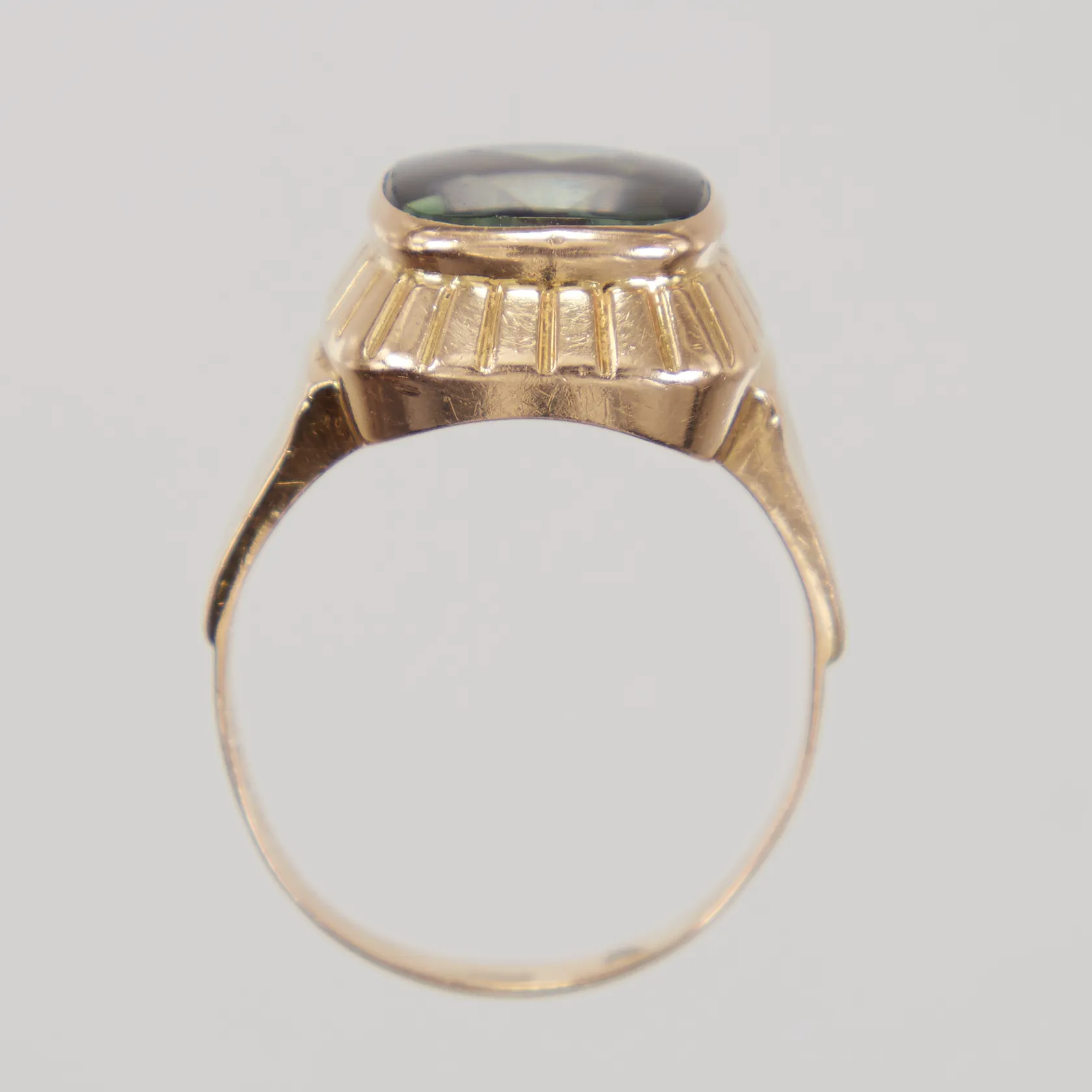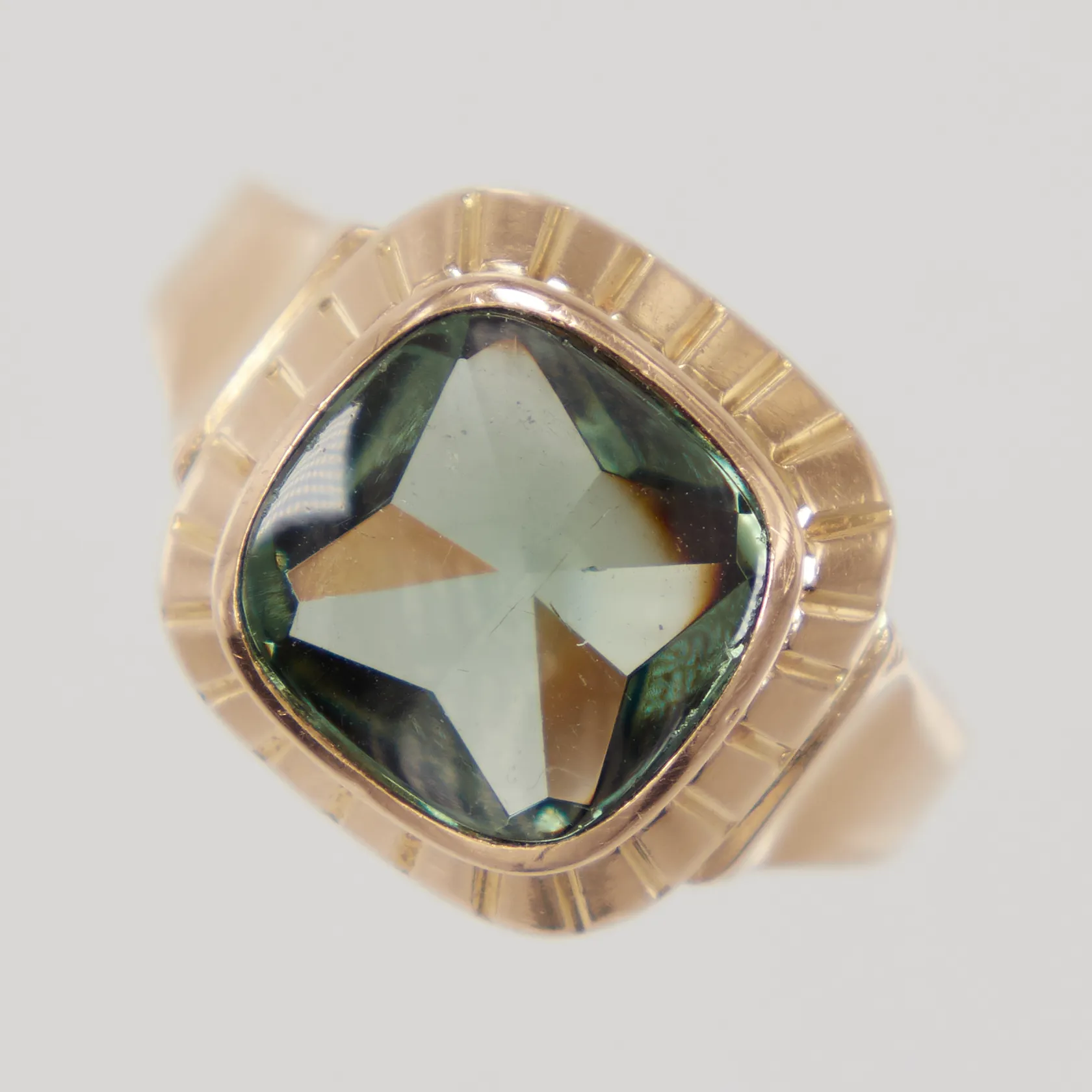 Ring med grön sten, stl 19½, bredd 2,6-14,5mm, smärre nagg, 18K, Vikt: 4,6 g.