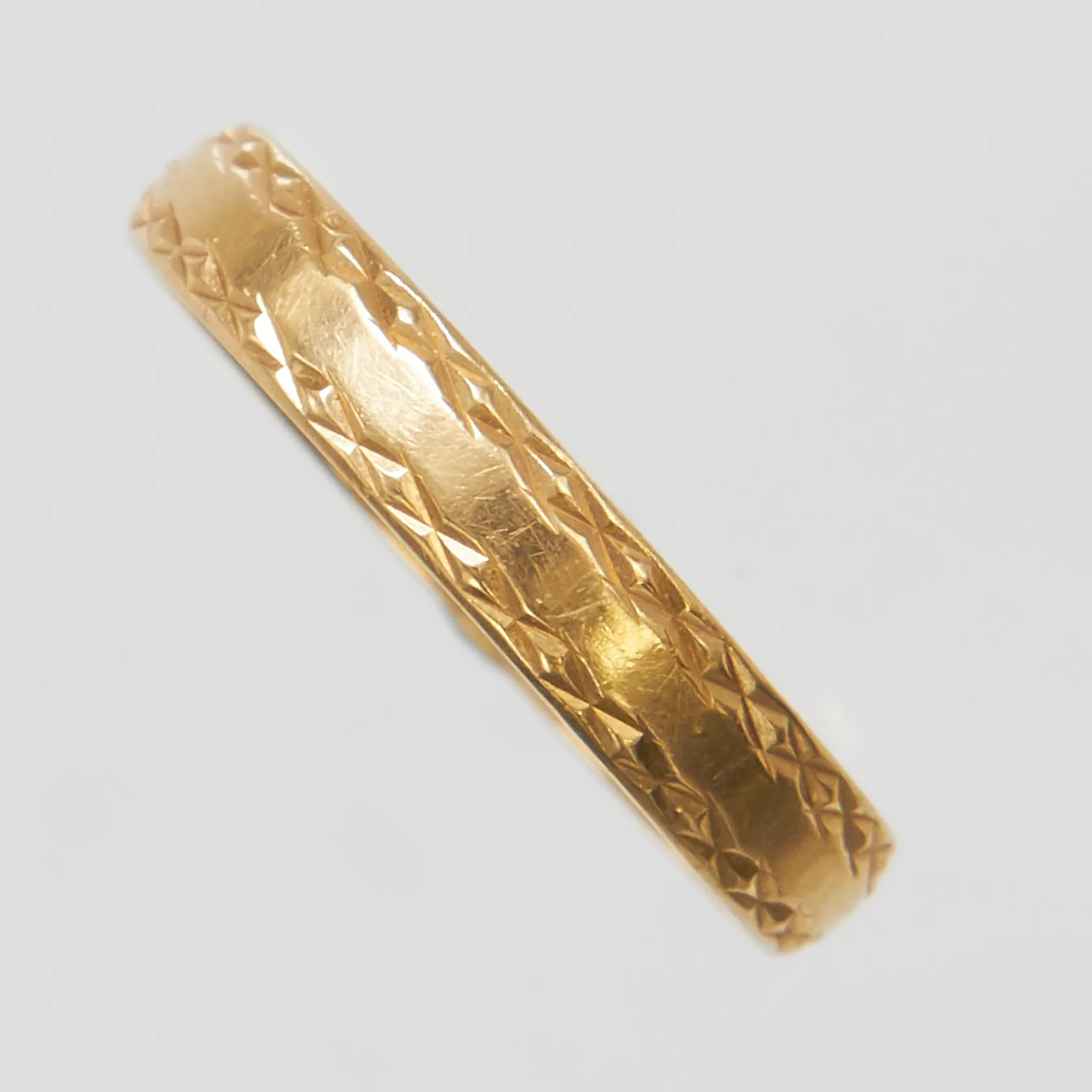 Ring, mönstrad, stl 20½, bredd 4mm, Schalins, gravyr, 18K Vikt: 3,9 g.
