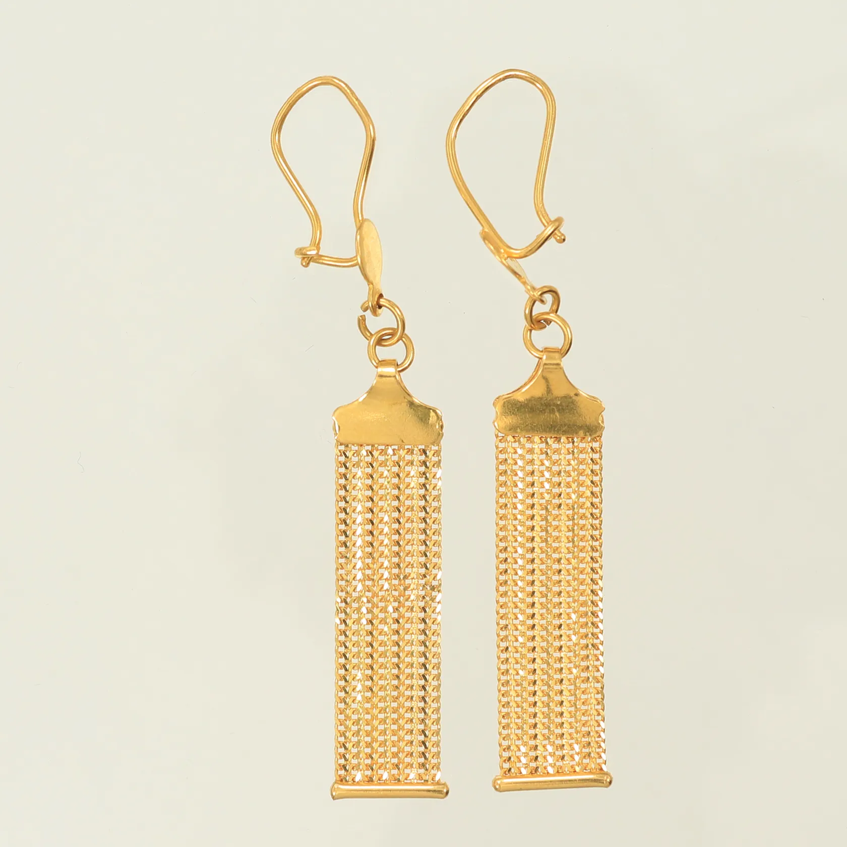Ett par örhängen fiskben, 55mm inkl ögla, bredd 9mm, ett hänge ojämnt & öglor ojämna, 21K 3,9g Vikt: 3,9 g.