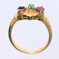 Ring diamanter 14x0,01ct, smaragd, safirer, rubiner, Ø15¾, hack i skenan på insidan, 18k Vikt: 4,6 g.