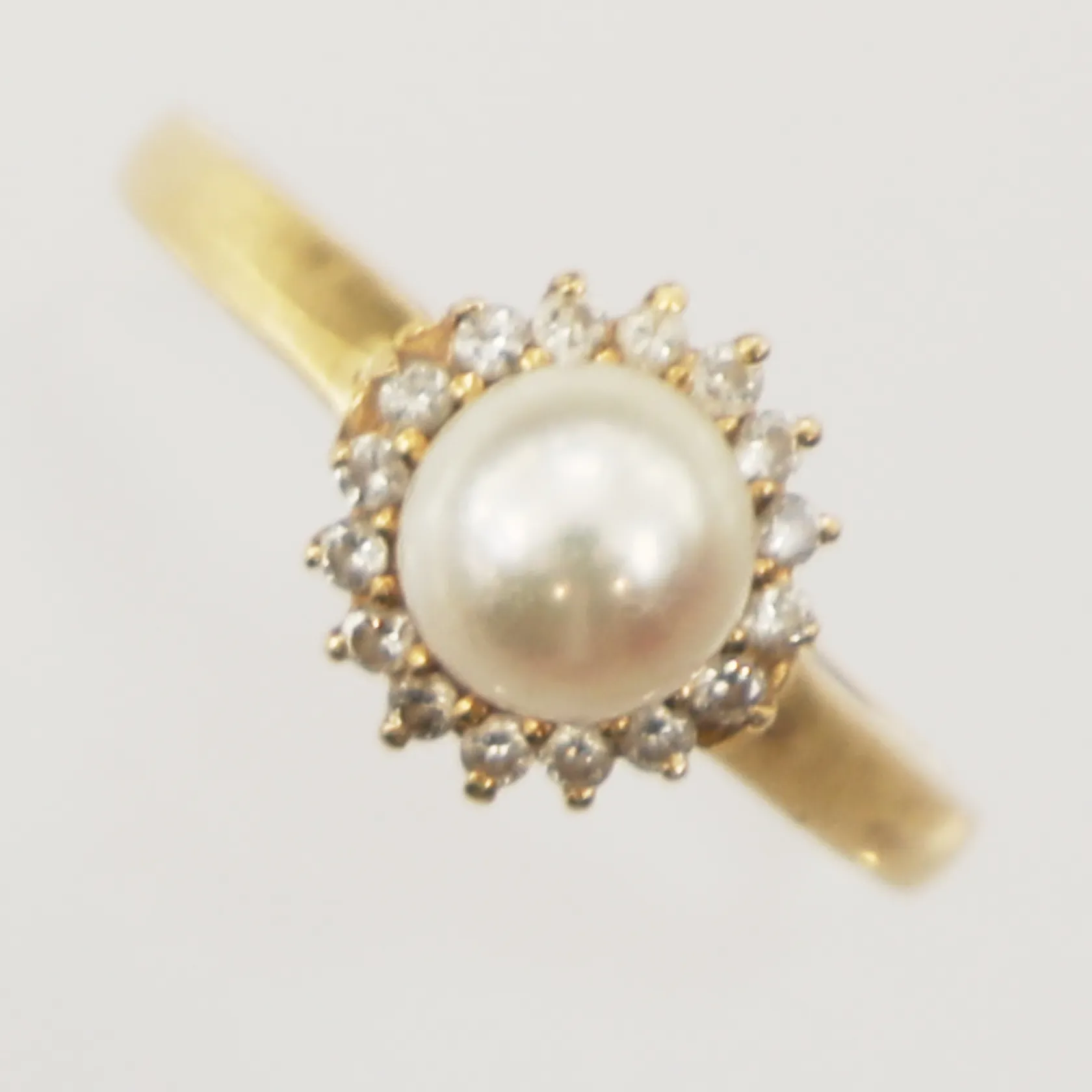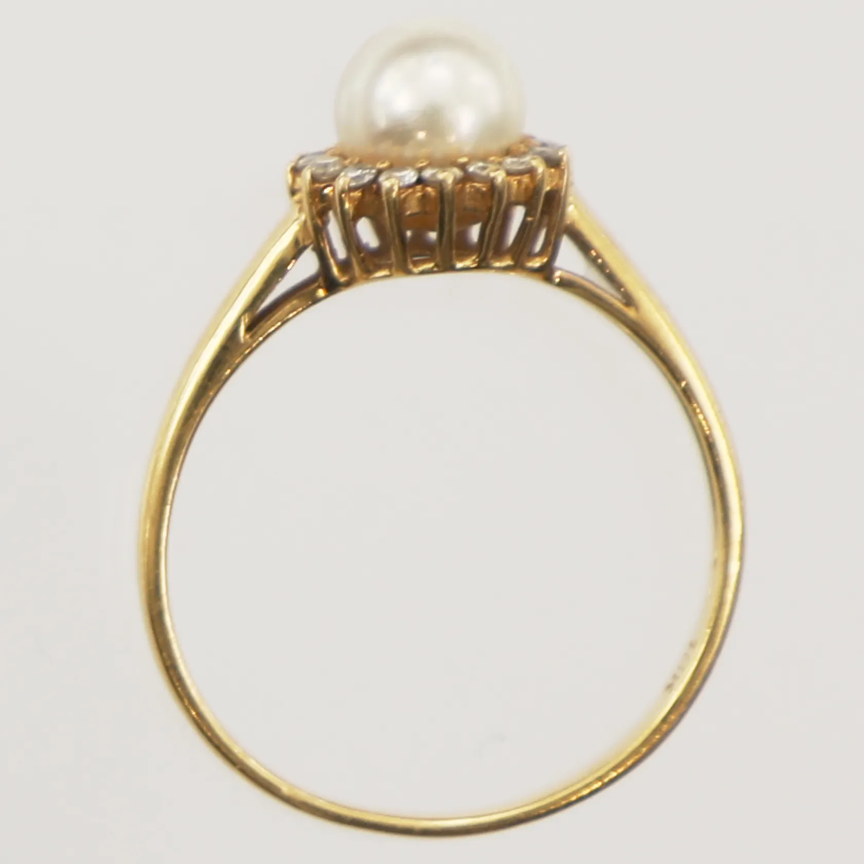 Ring med pärla samt diamanter, ca 16x ca0,01ct stl 17½, bredd 9,3mm, 18K Vikt: 2,5 g.