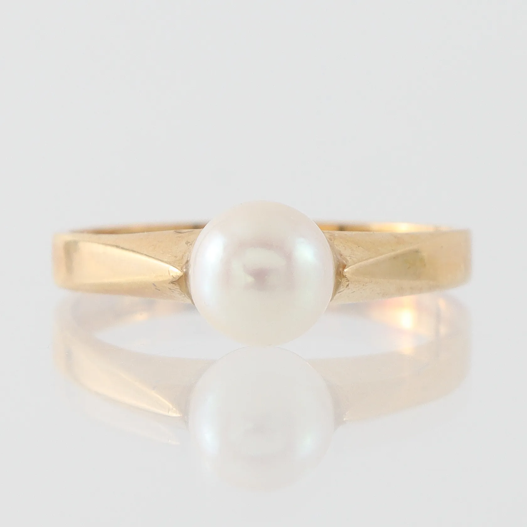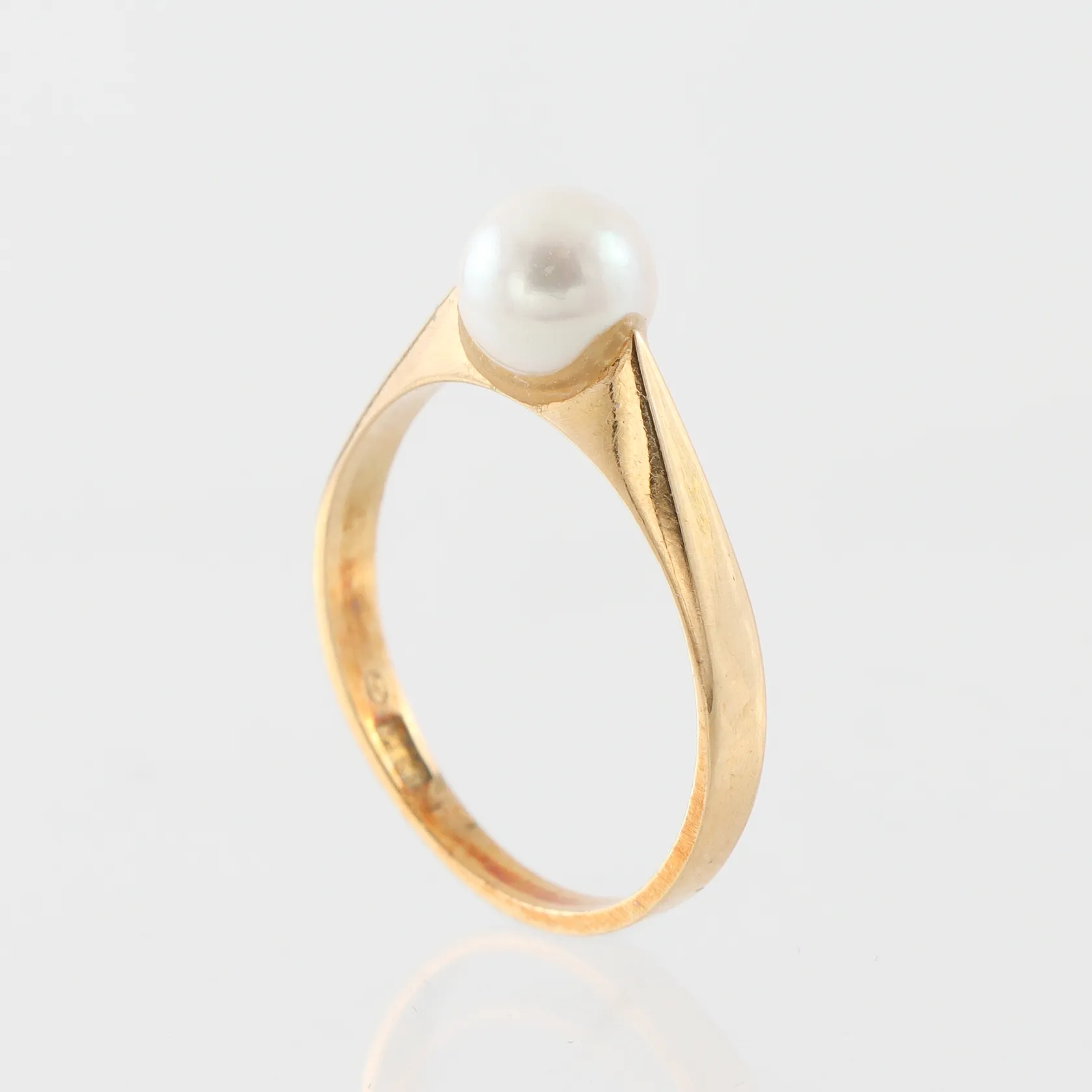 Ring med pärla, storlek 17 mm, bredd 2-6.2 mm, 18k. Vikt: 2,4 g.