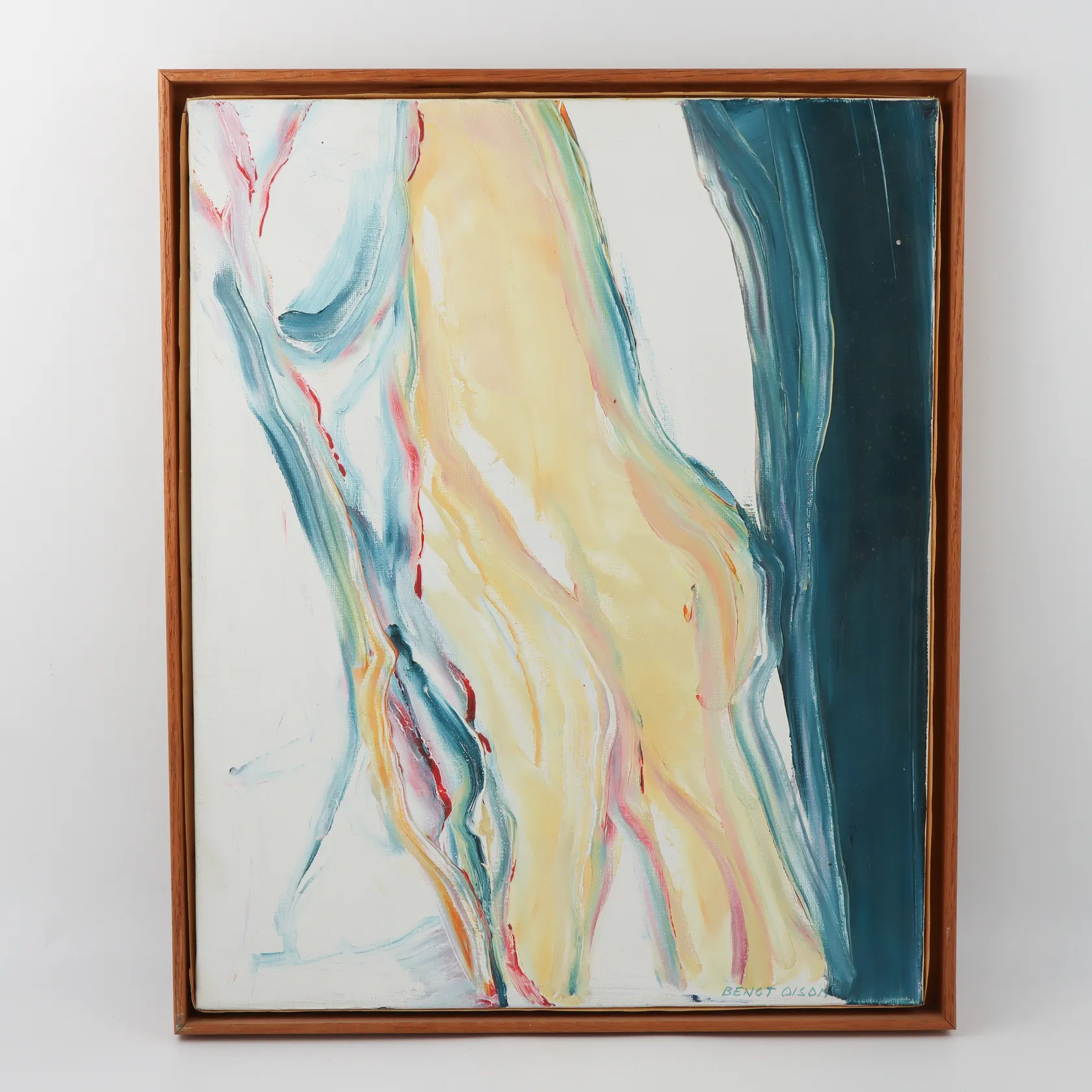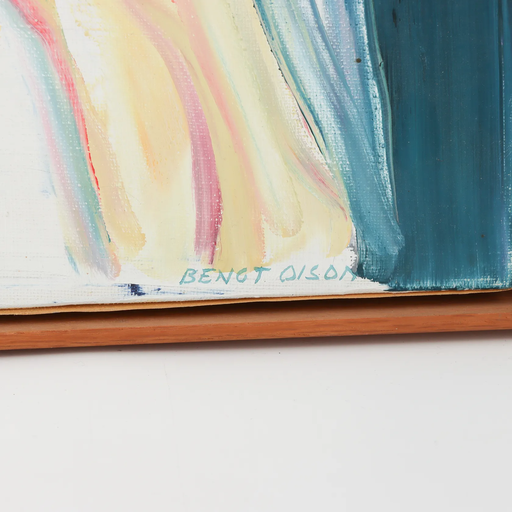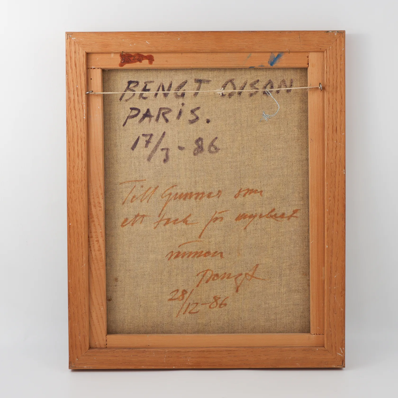 Bengt Olson "Komposition", signerad och daterad Paris 17/3 -86, olja på duk, 41x33 cm. Skickas med postpaket. Omfattas av BUS-avgift.