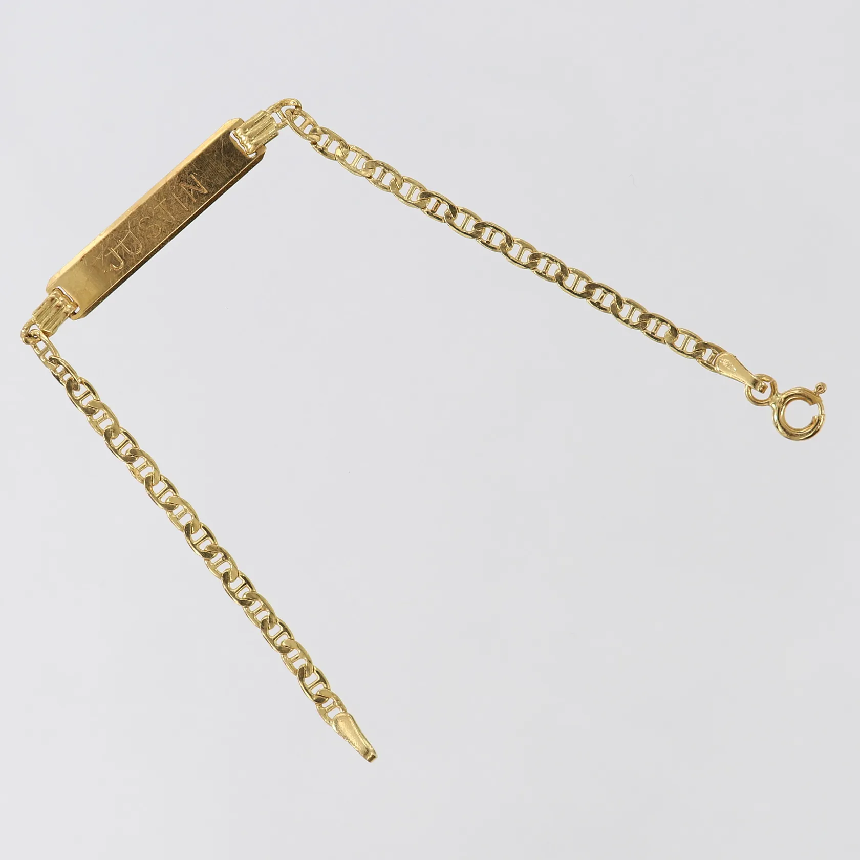 Armband med bricka, ca 14,5cm, bredd 2-4,5mm, gravyr. 18K Vikt: 2,1 g.