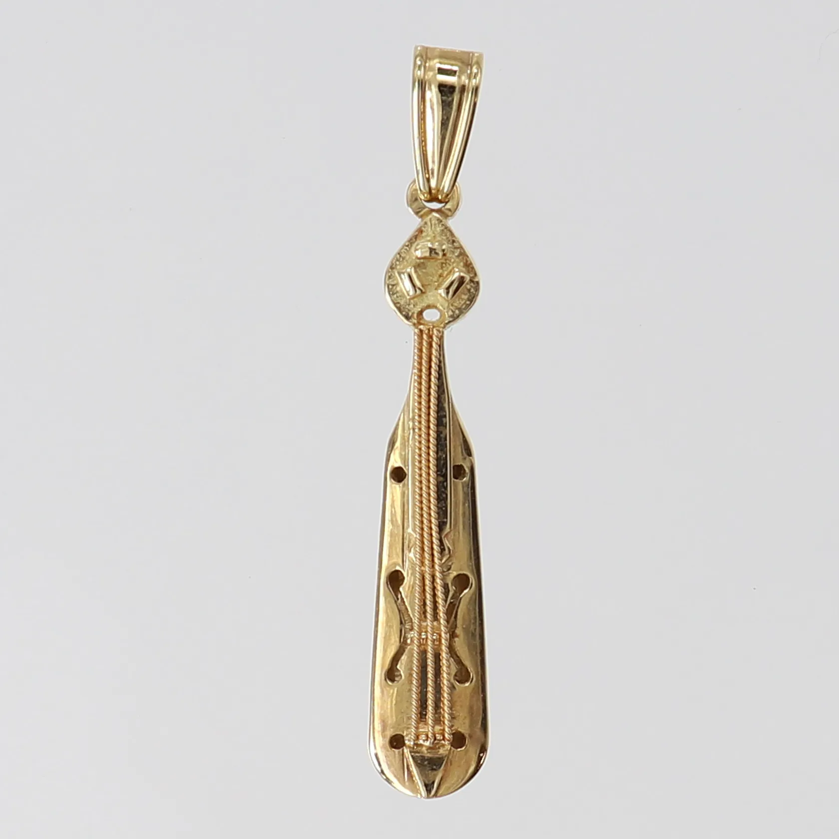 Hänge stränginstrument, 33x5,5mm ink ögla, 14K. Vikt: 2 g.