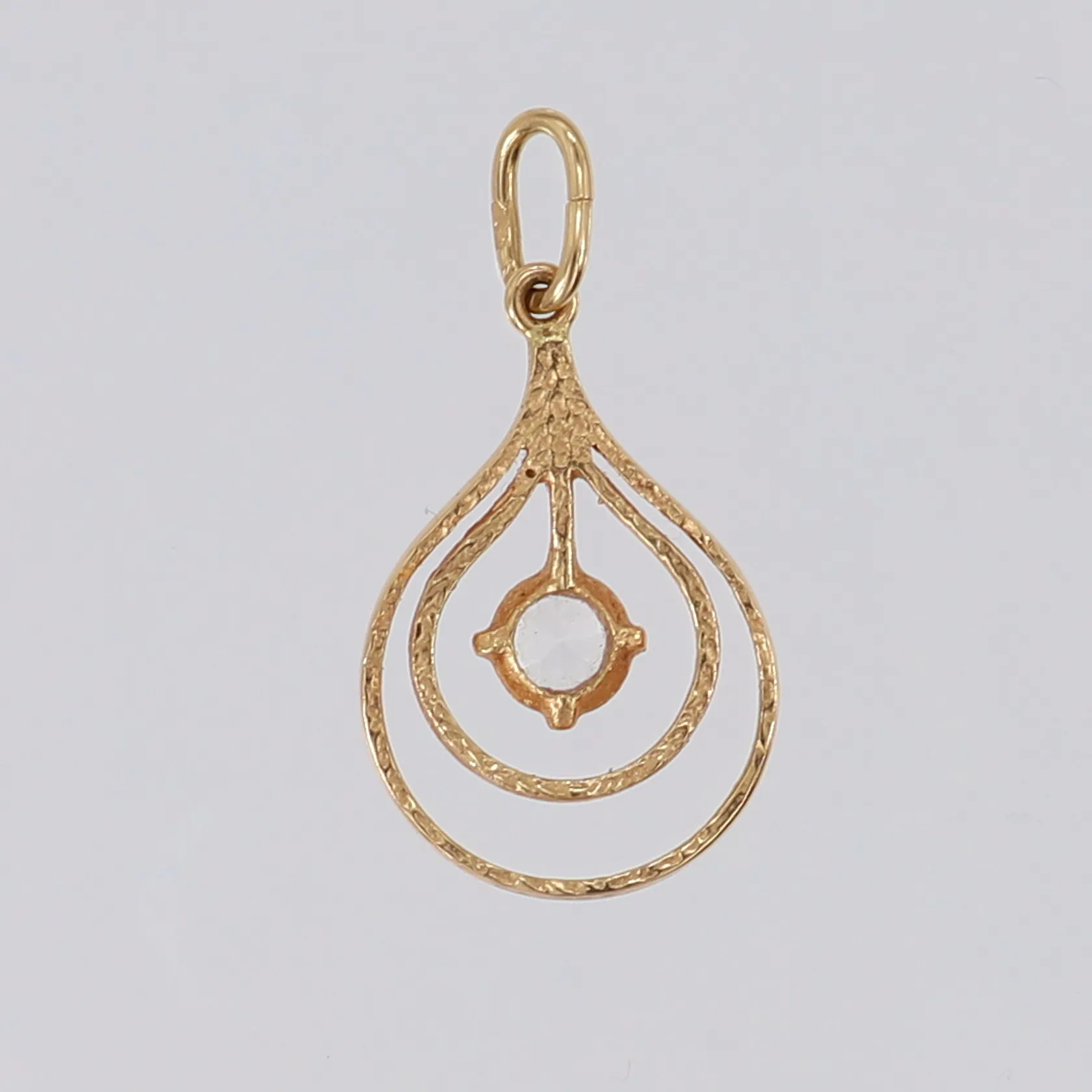Hänge med vit sten, längd inkl ögla ca 25mm, bredd ca 1-3,5mm, 18K Vikt: 1,4 g.