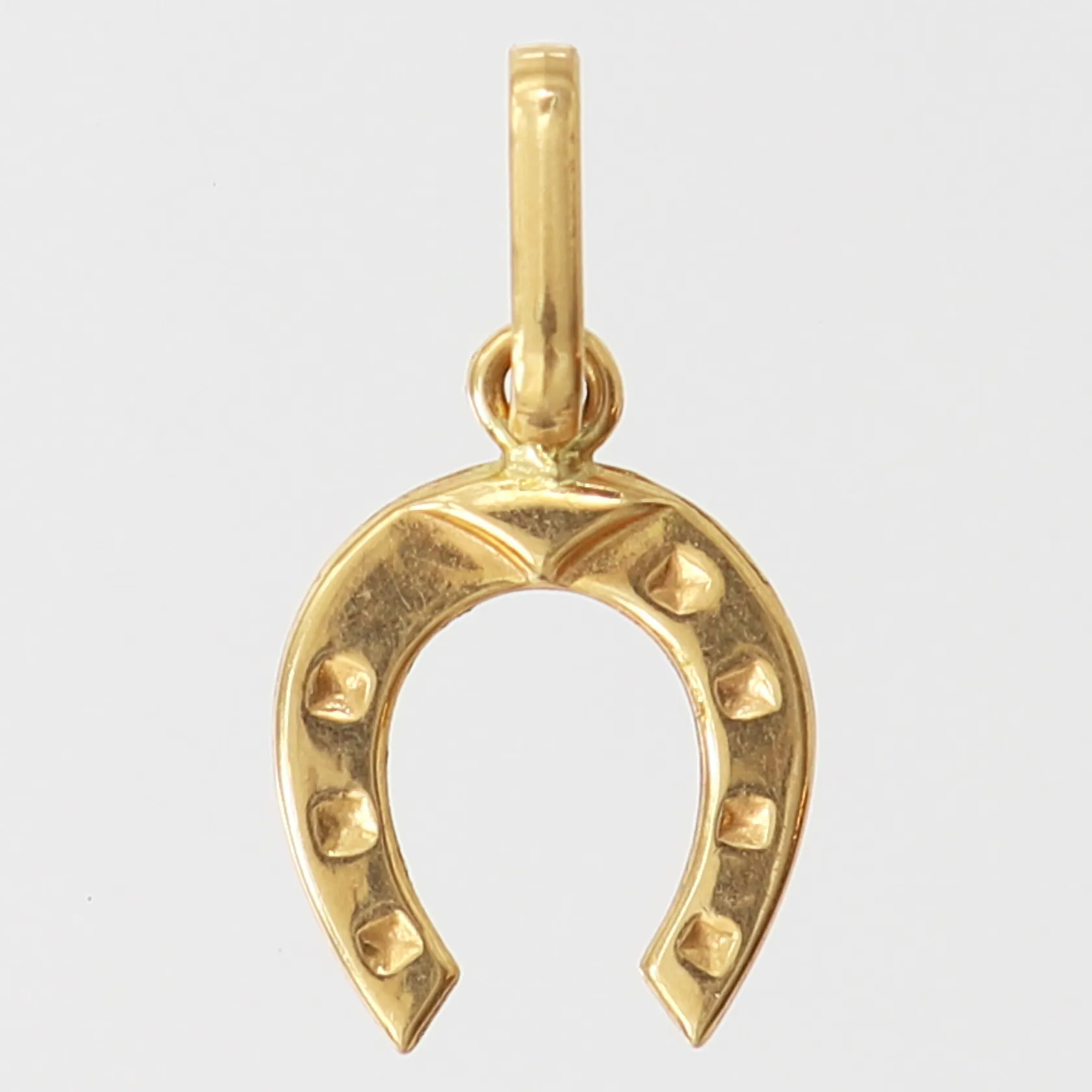 Hänge hästsko, 17x9,5mm ink ögla, 18K. Vikt: 0,3 g.