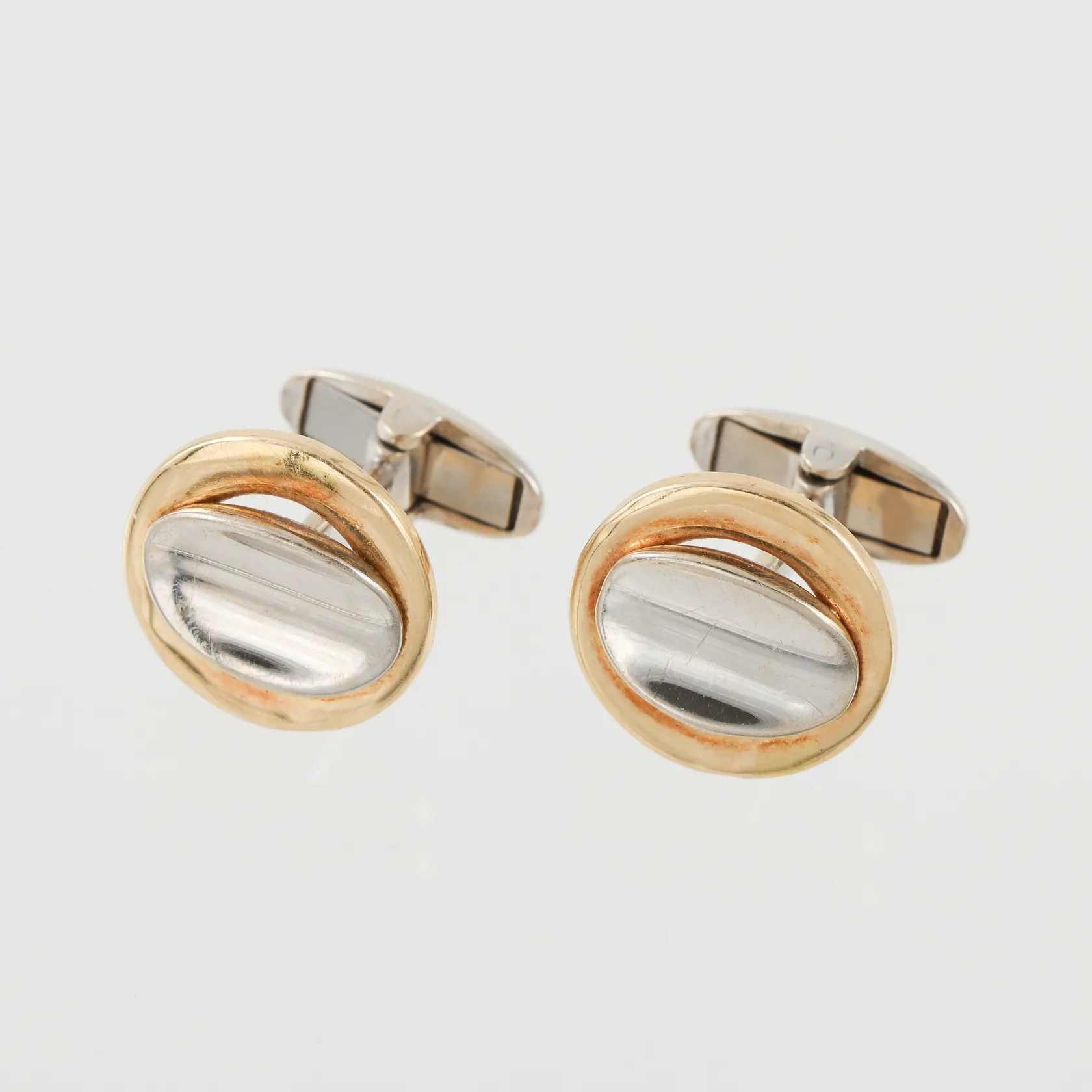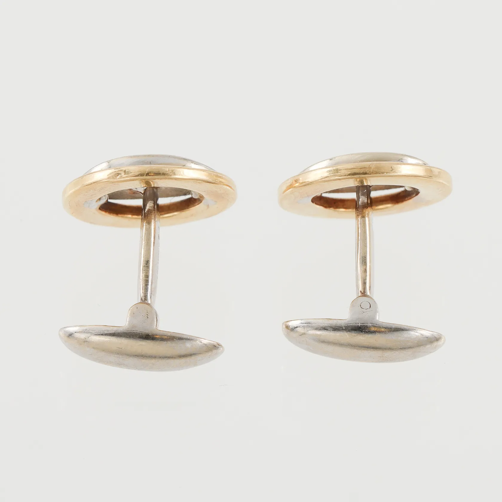 Manschettknappar röd och vitguld, diameter 16 mm, 14k. Vikt: 10,3 g.