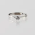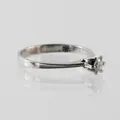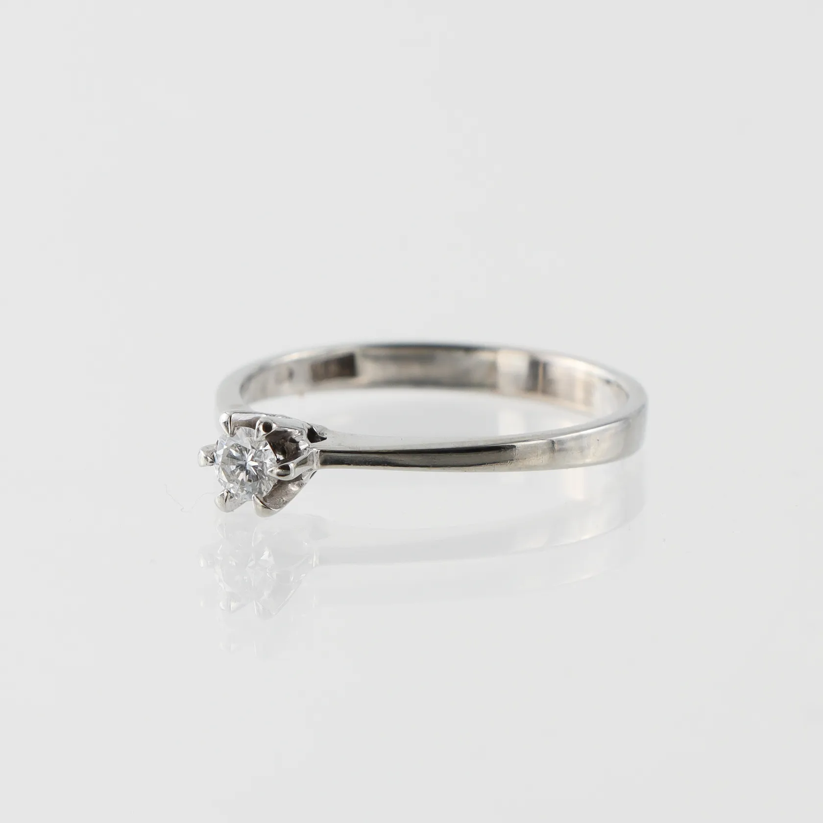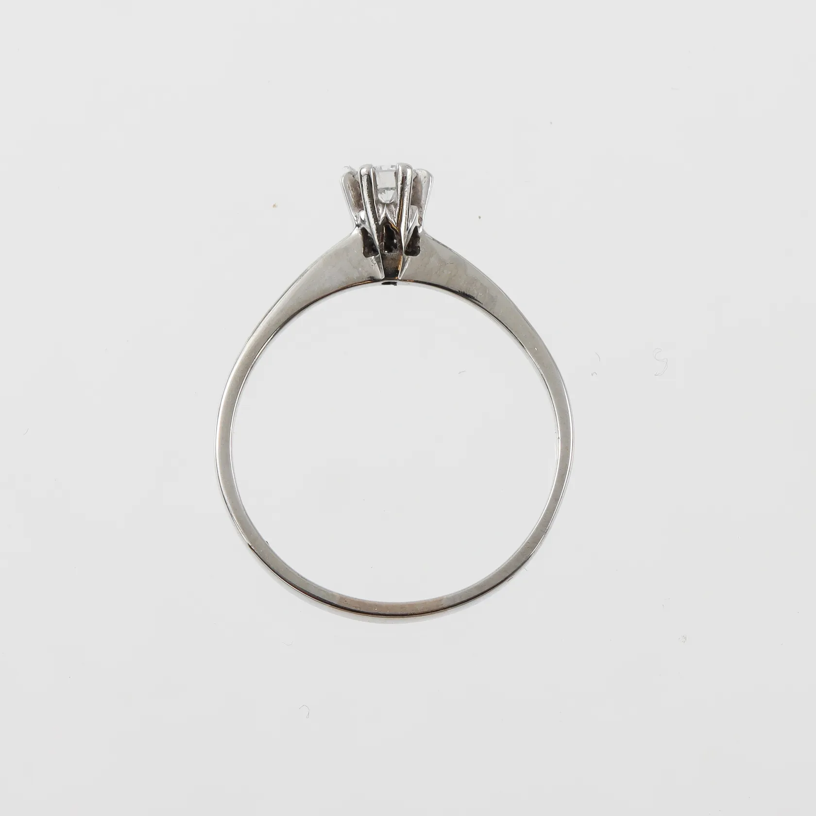Ring vitguld med solitär diamant på 0.14 ct enligt inskription, storlek 17 ¼ mm, bredd 2.4-4.8 mm, 18k. Vikt: 2,1 g.