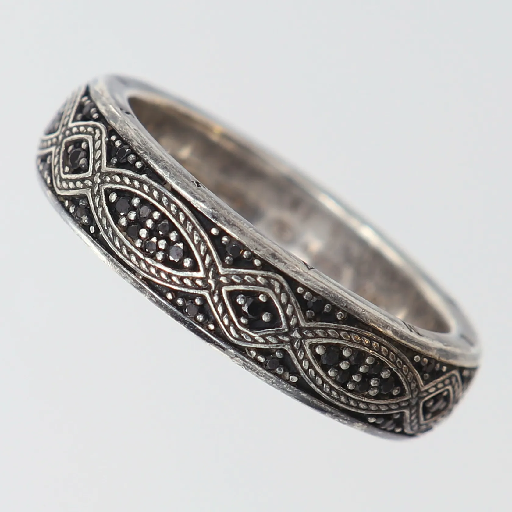 Ring, stl 21/66, bredd ca 6mm, Thomas Sabo, Bandring love knot, svart zirkonia, 925/1000 silver Vikt: 11,9 g.