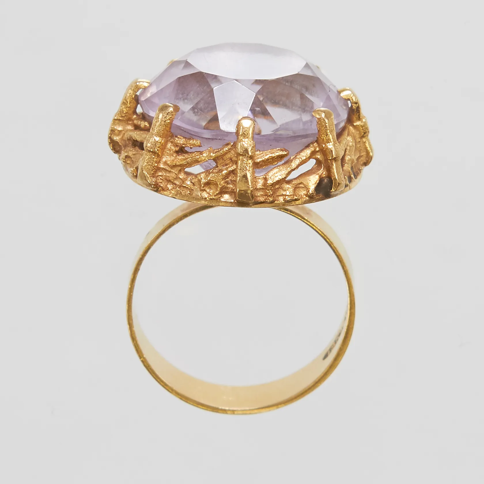 Ring med ametist, stl16½, bredd 4,8-20,8mm, 18K, bruttovikt 8,5g Vikt: 8,5 g.