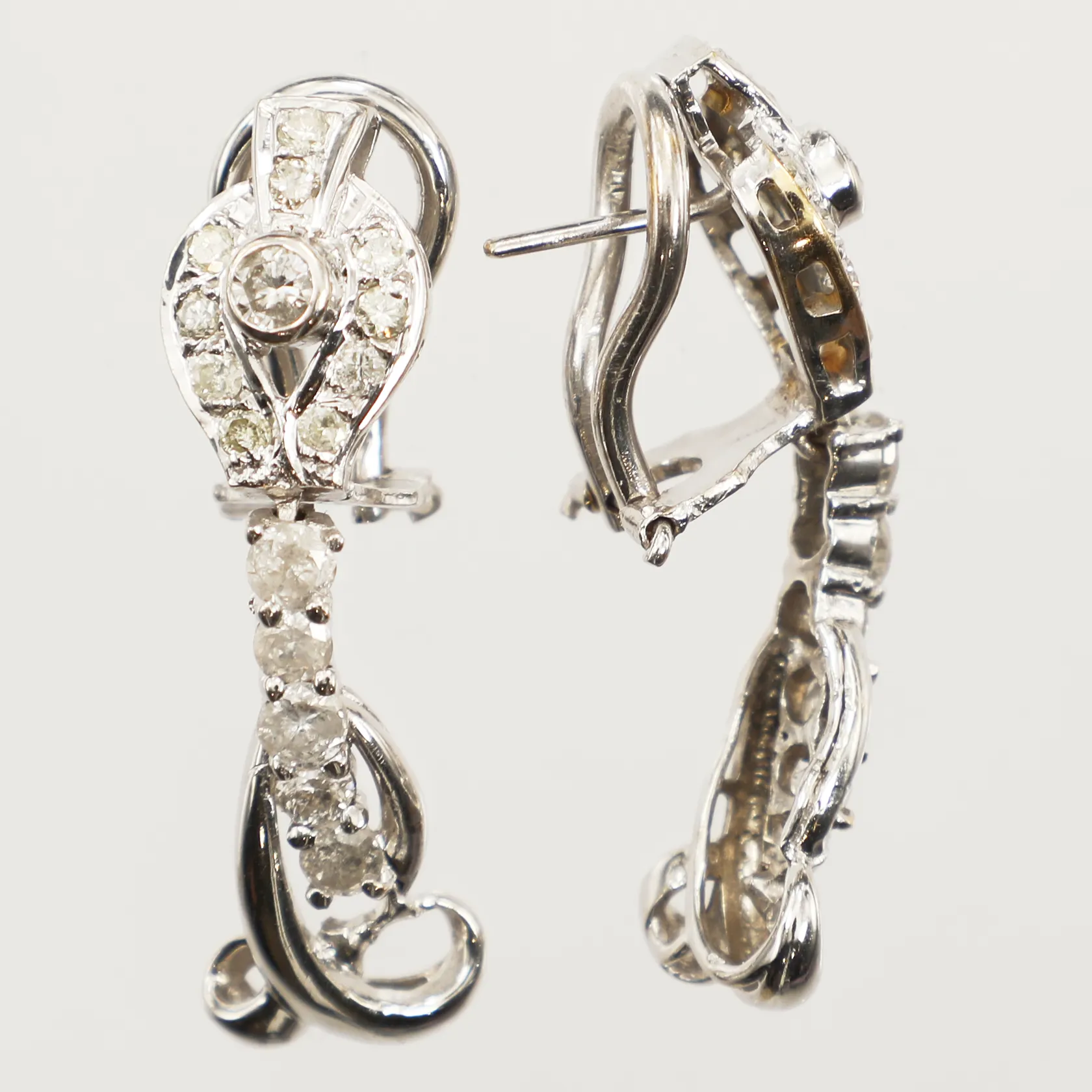 Ett par örhängen med diamanter, 32xca0,03-0,12ct indikerar på syntetiska, tydliga inneslutningar, vitguld, längd 37mm, bredd 10mm, vitguld, 18K Vikt: 12,8 g.