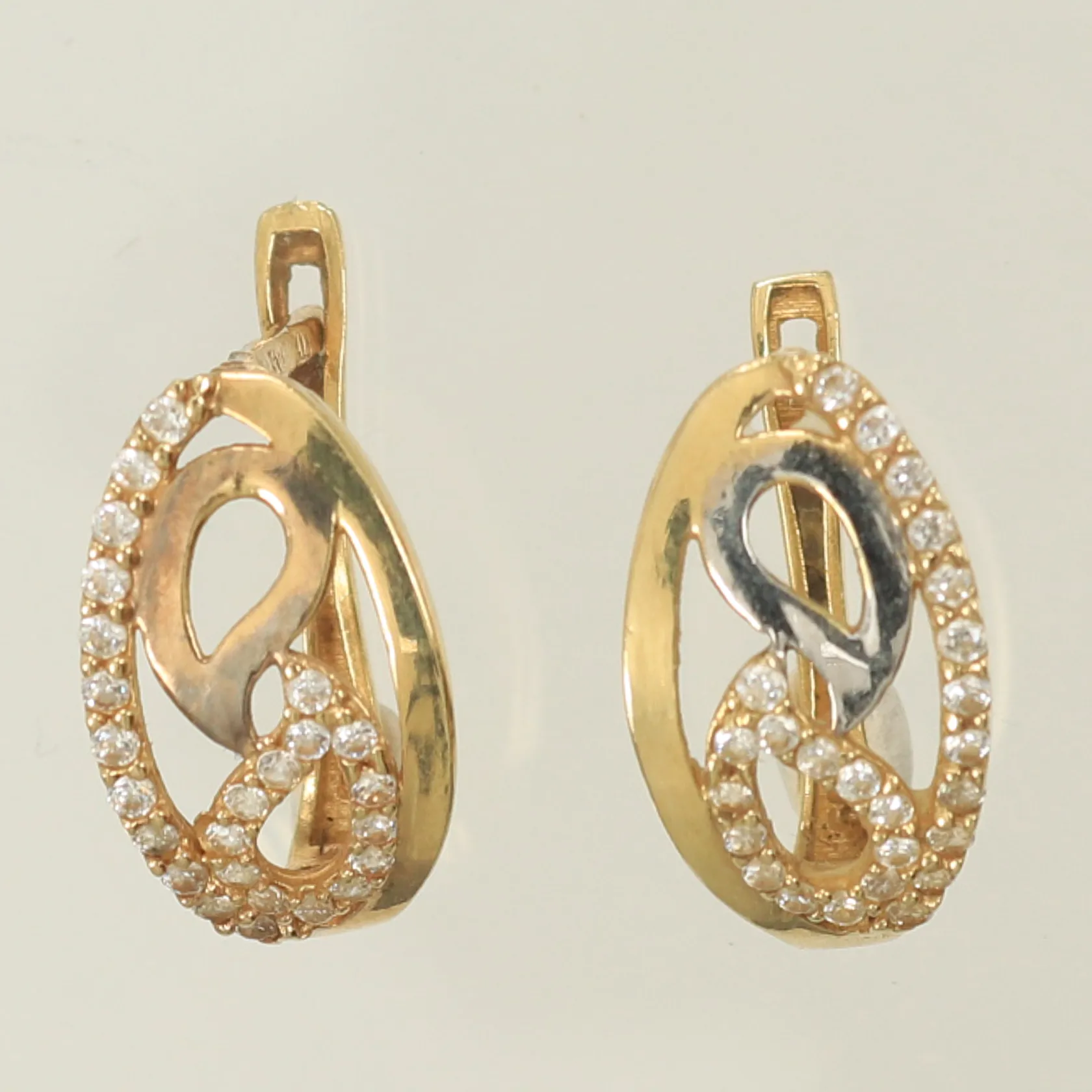 Ett par örhängen tvåfärgade med vita stenar 16x9mm, 14K Vikt: 2,6 g.