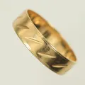 Ring med mönster stl 16¾, bredd 5mm, ostämplad, 14K, 1,8g Vikt: 1,8 g.