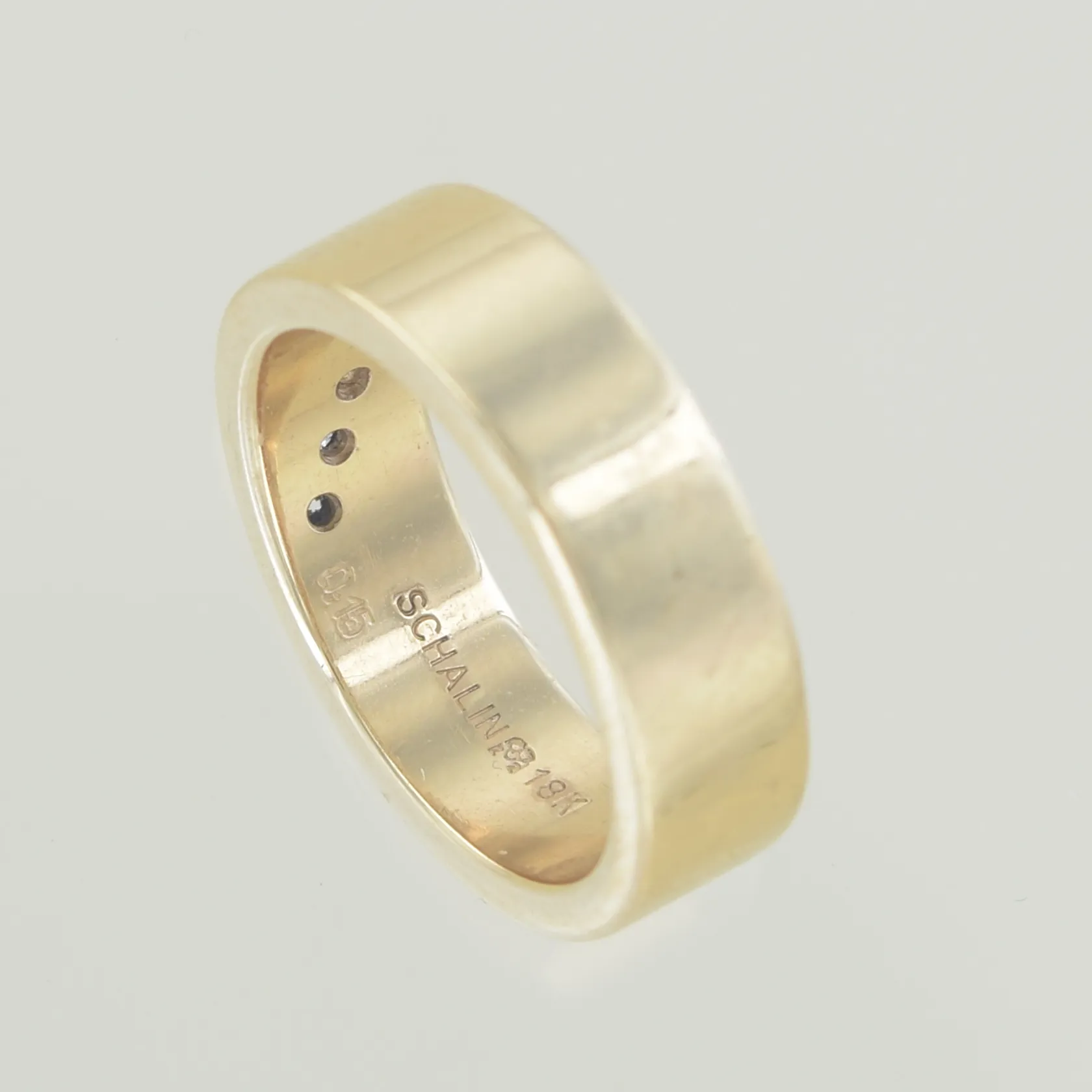 Ring schallins med diamanter 0,15ct, Ø 19½ mm, bredd 7 mm, 18K Vikt: 14,8 g.