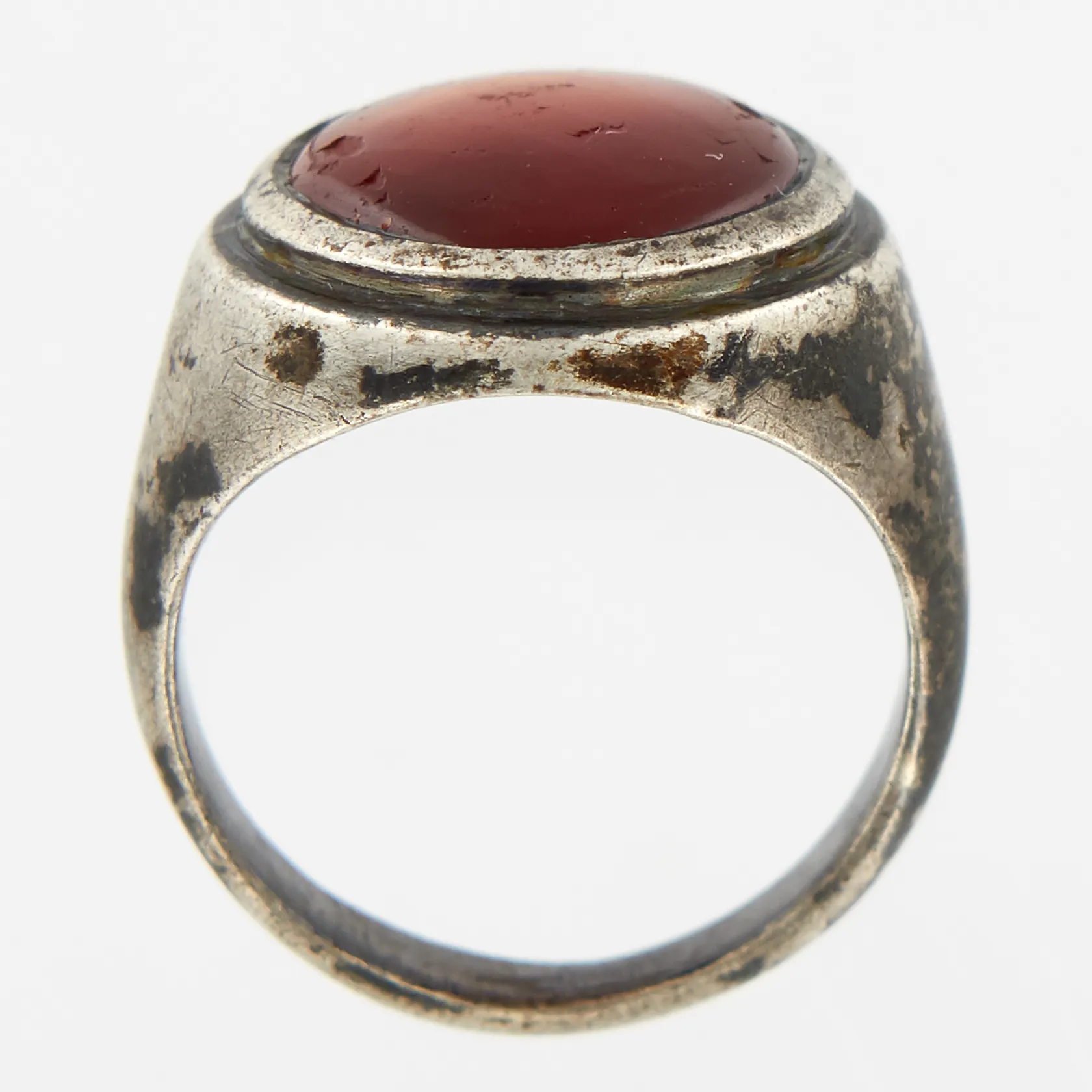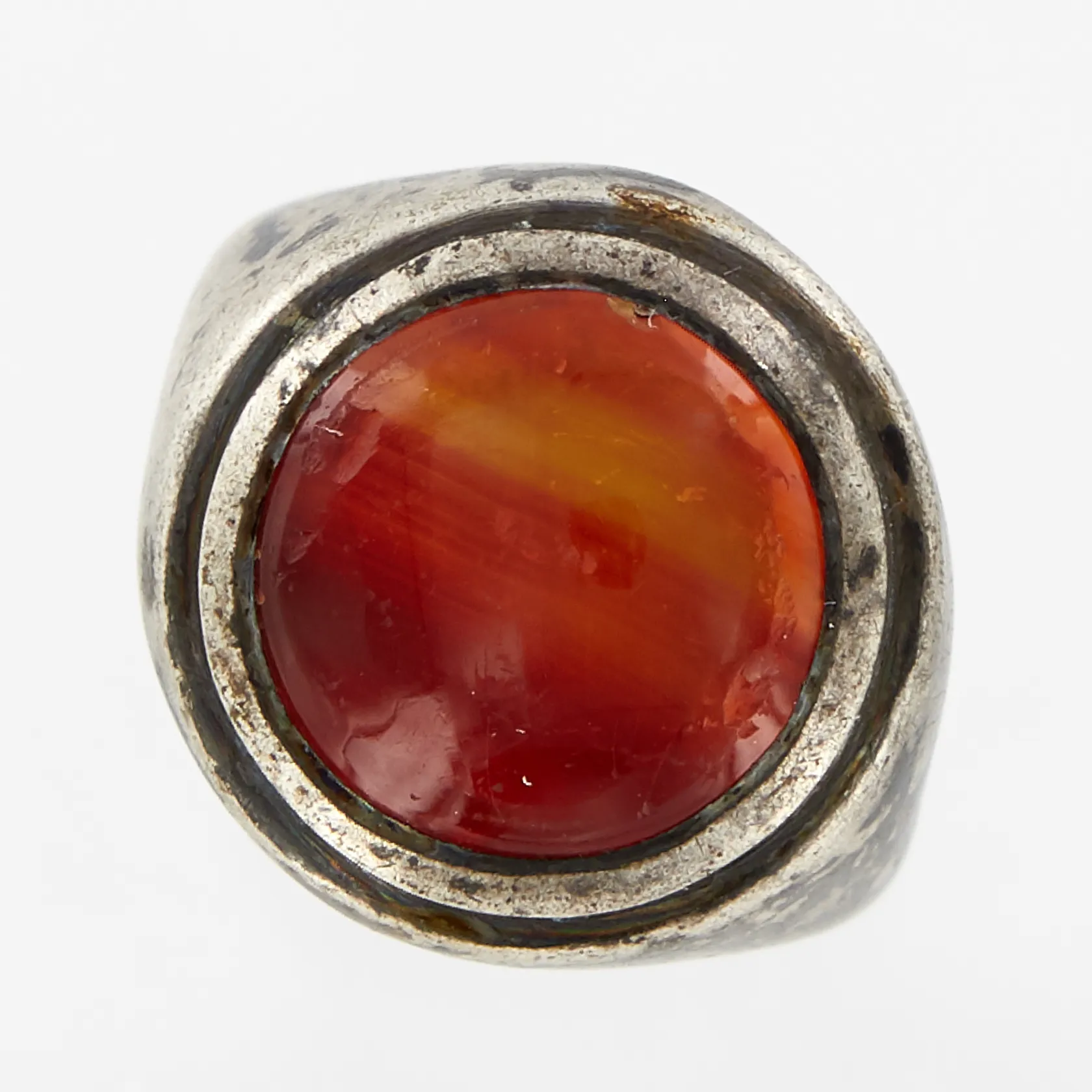 Ring med bärnstensliknande sten, stl 18¼, bredd: 3-18mm, silver 800/1000 Vikt: 8,1 g.
