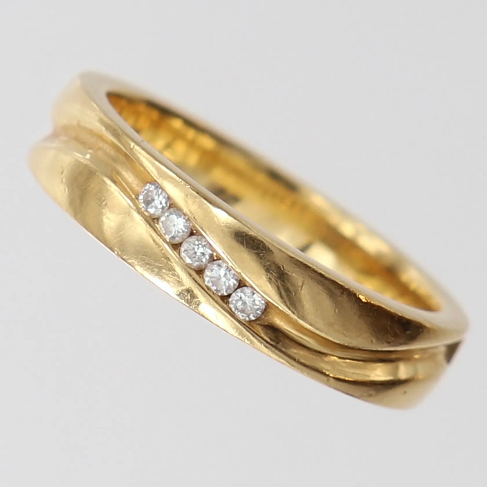 Ring med briljantslipade diamanter tot 0,06ctv enligt gravyr, stl: 16¼, bredd 4,5mm, GHA, 18K. Vikt: 5,8 g.