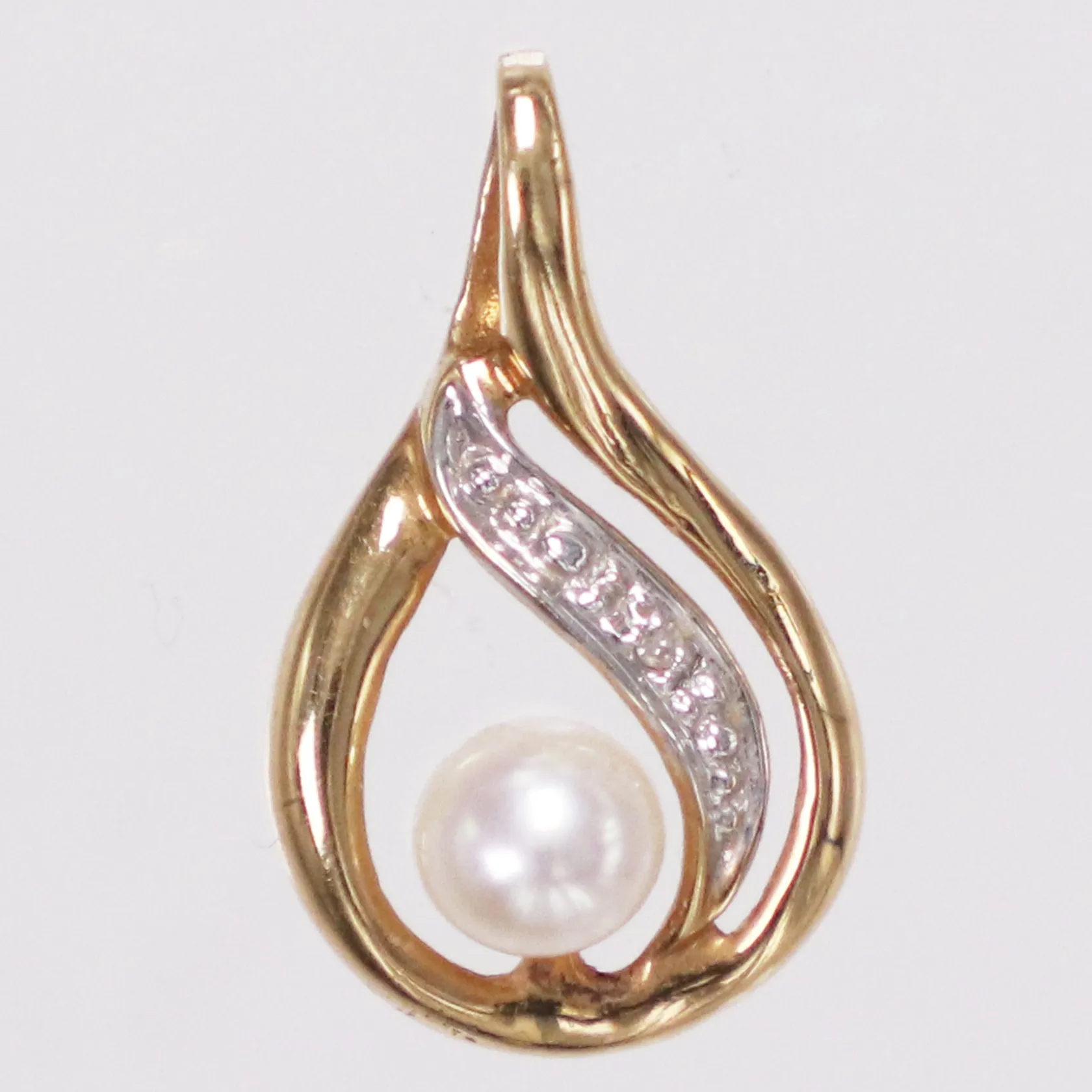 Hänge med diamant 1xca 0,002ct samt odlade pärla, längd 16,9mm inkl ögla, bredd 10,1mm, tvåfärgad, 18K Vikt: 0,6 g.