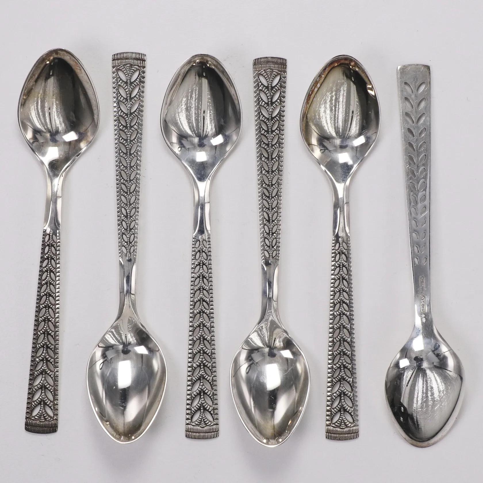 6 Kaffeskedar, längd 11cm, Norway, etui, silver 830/1000 Vikt: 58,6 g.