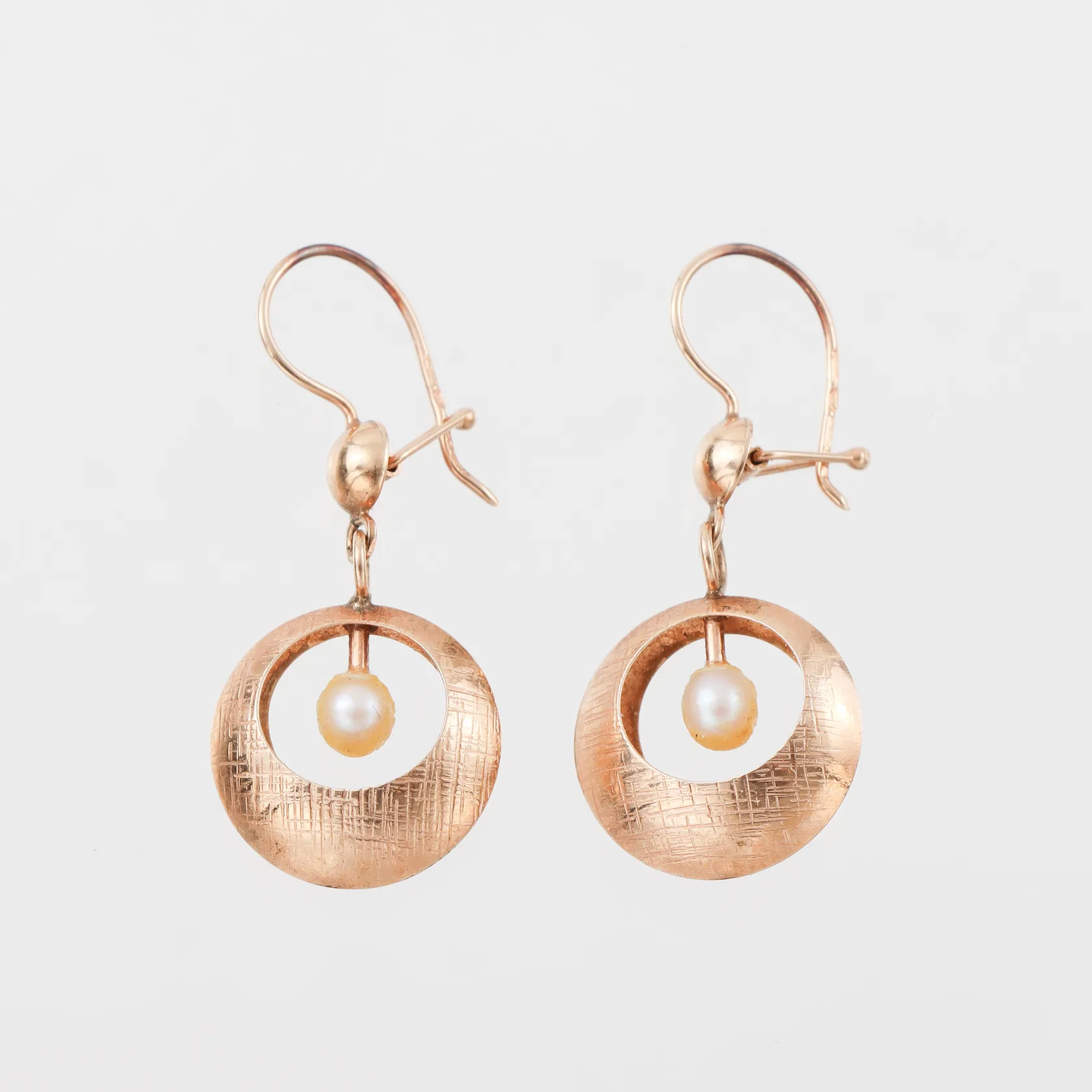 Örhängen 14k paret med pärlor Finland, totalhöjd ca 33 mm. Vikt: 2,6 g.