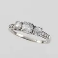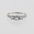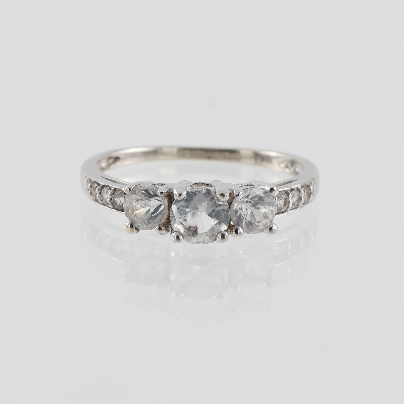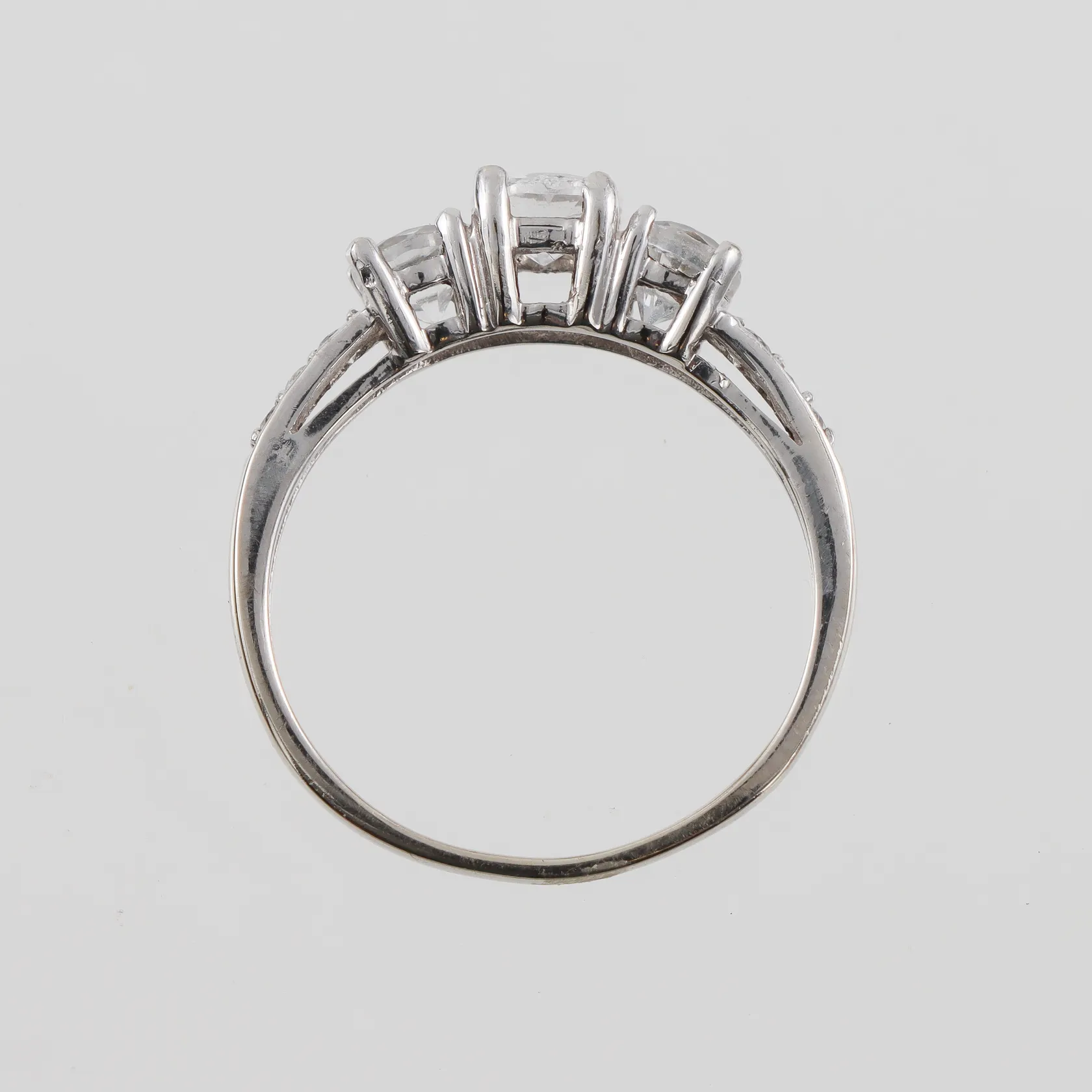 Ring vitguld med 3 st stenar, storlek 18 mm, bredd 1.4-5.1 mm, 10k. Vikt: 2,2 g.