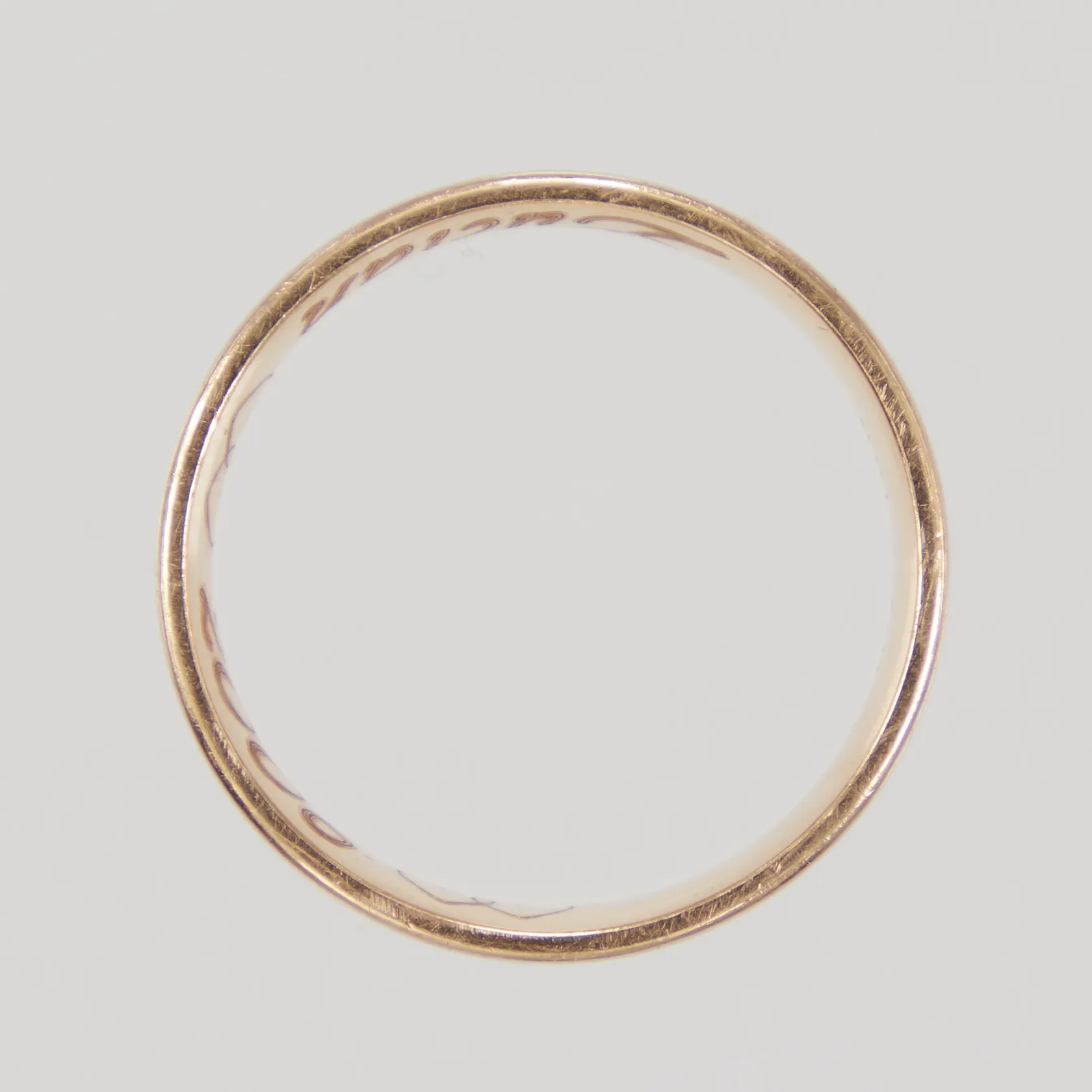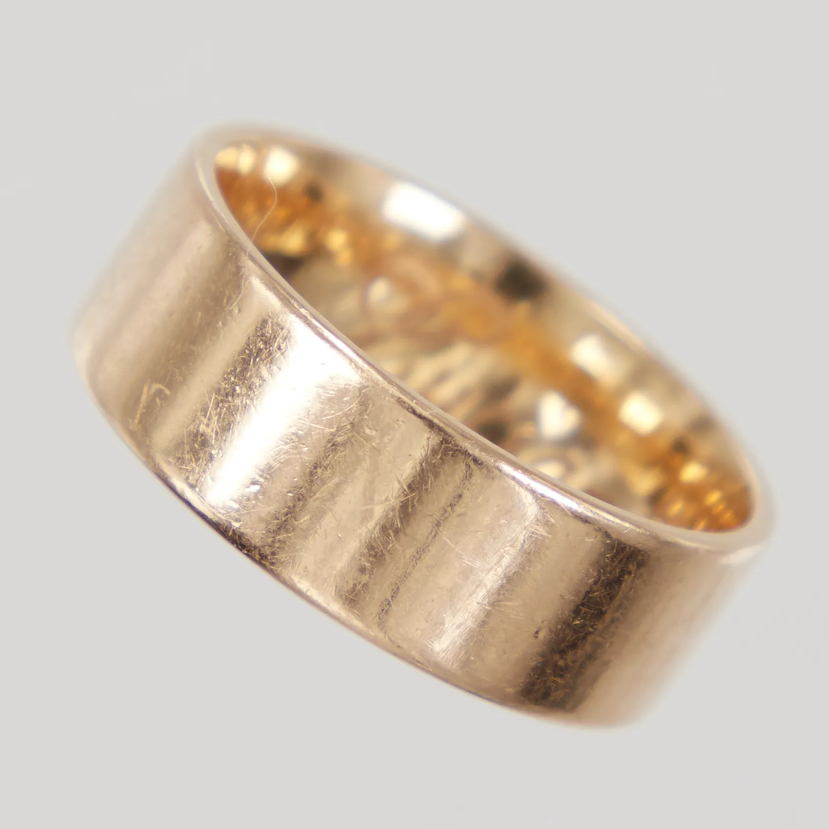Ring, stl 17¾, bredd 6,9mm, gravyr, Schalins, 18K, Vikt: 7,8 g.