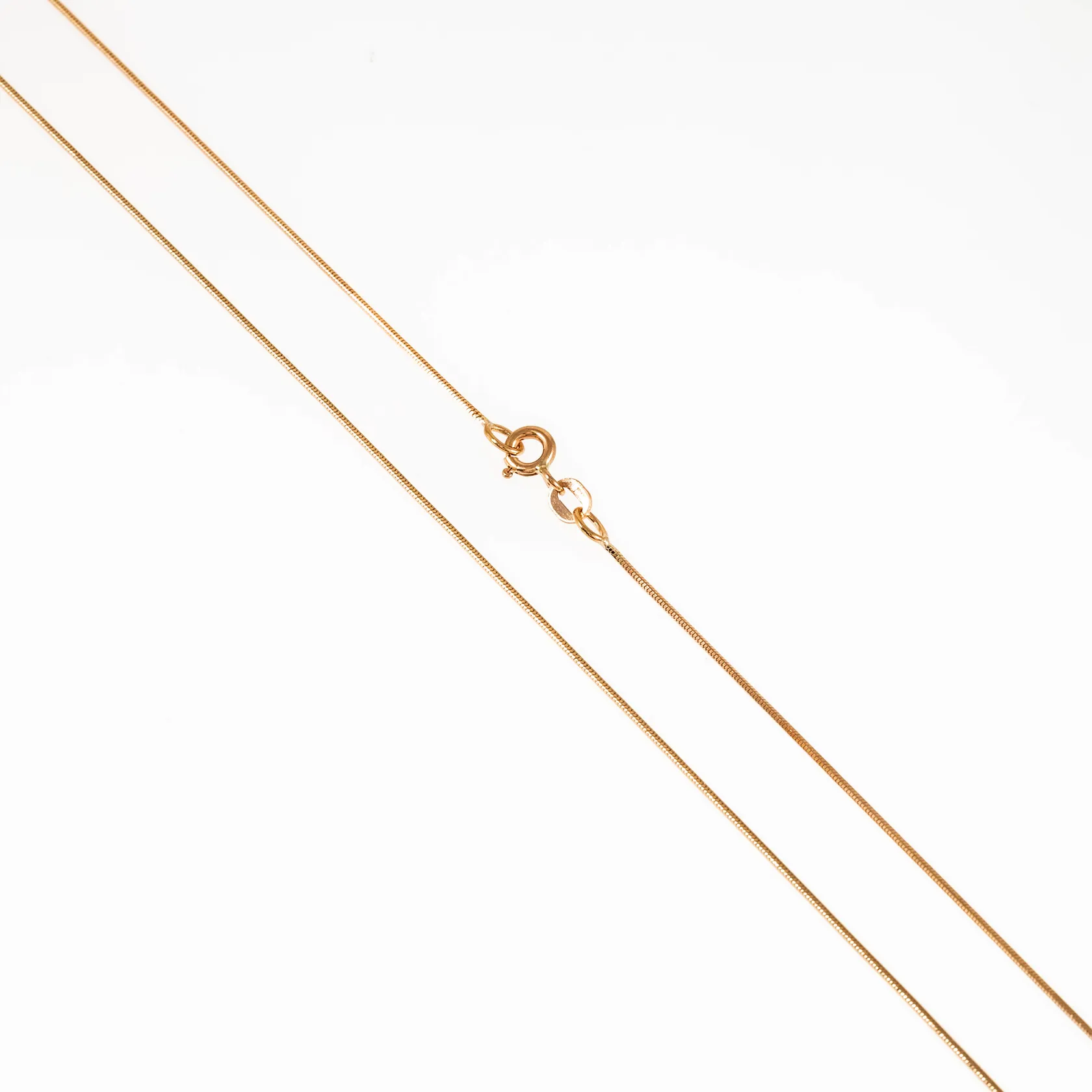 Halskedja kantig ormlänk i 18K guld. Den är 42 cm lång, 0,7 mm bred och väger 2,6g. Balestra, 750. Springring. Vikt: 2,6 g.