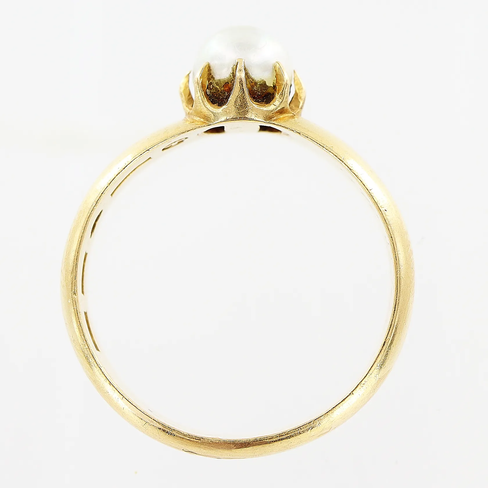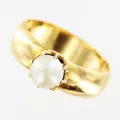 Ring, odlad pärla, stl 18¾, bredd 6mm, gravyr, 20K. Vikt: 6,9 g.