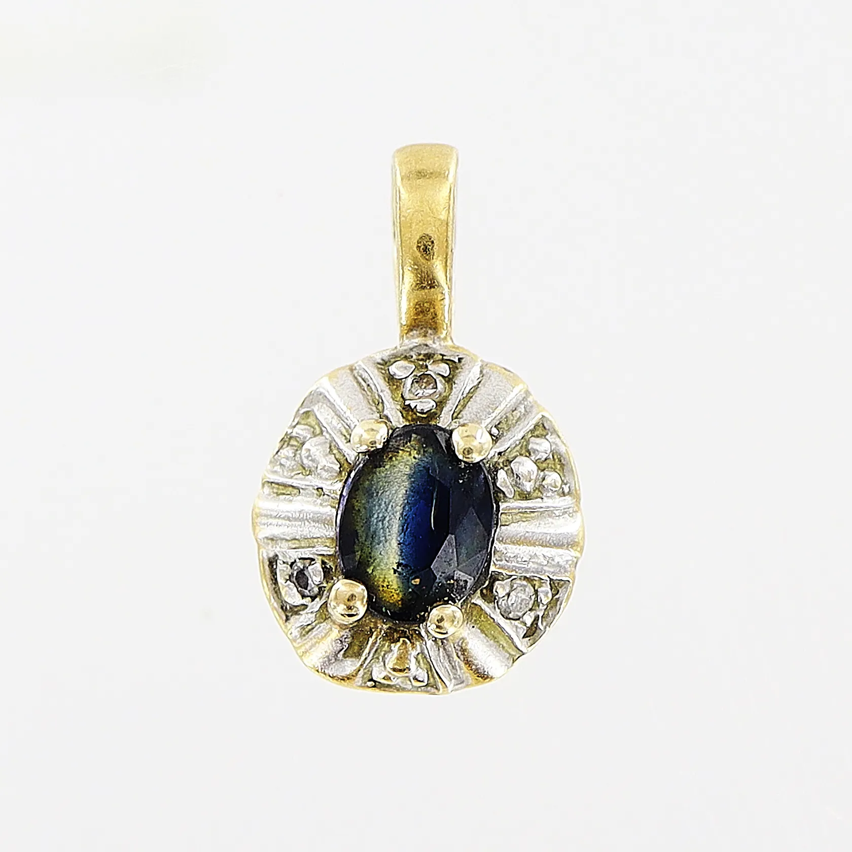 Hänge diamanter 3 x ca 0,005ct blå sten, 7x11mm, vitguldsdetaljer, 18K. Vikt: 0,5 g.