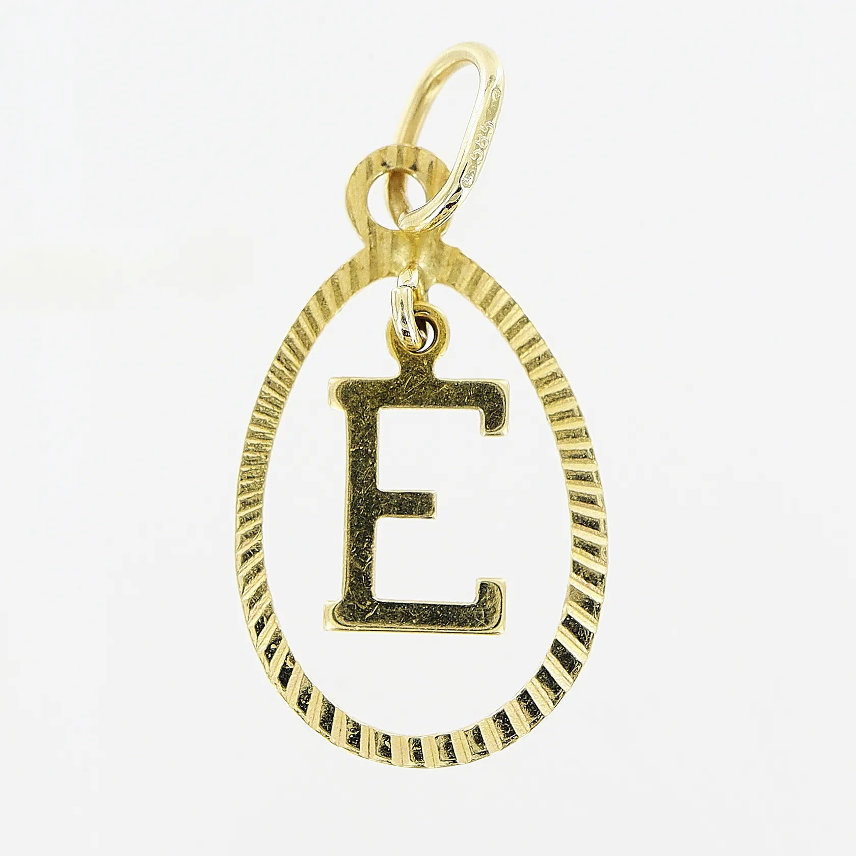 Hänge bokstaven E, 11x29mm, 14K. Vikt: 0,7 g.