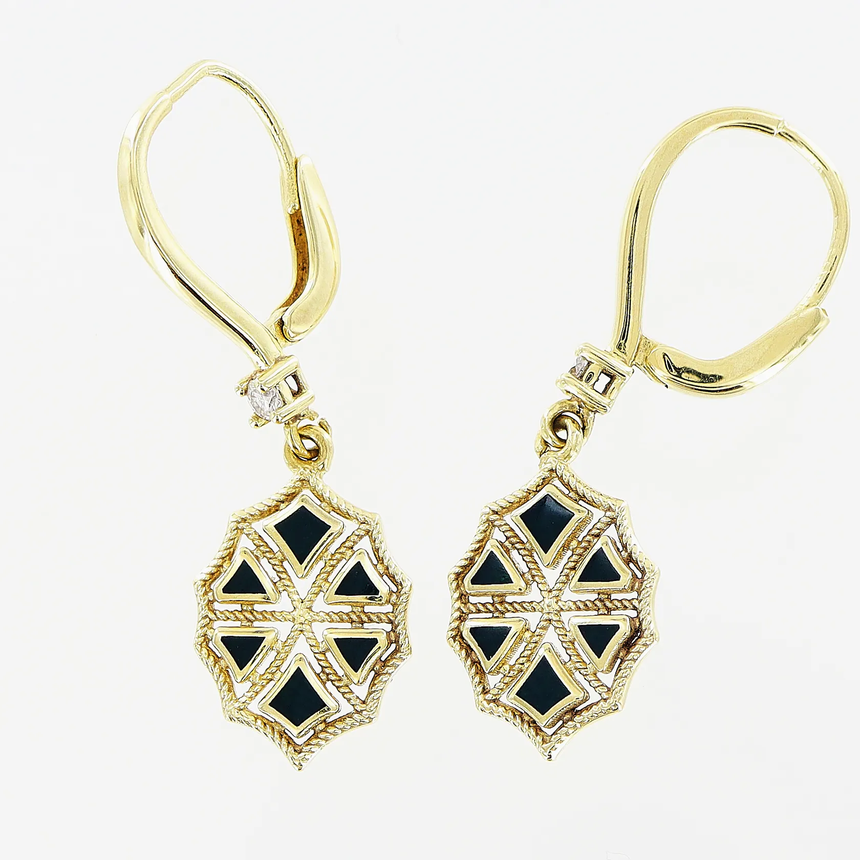 Ett par örhängen diamanter 2 x ca 0,03ct gröna stenar, 35x10mm, krokfäste, 18K. Vikt: 4,4 g.