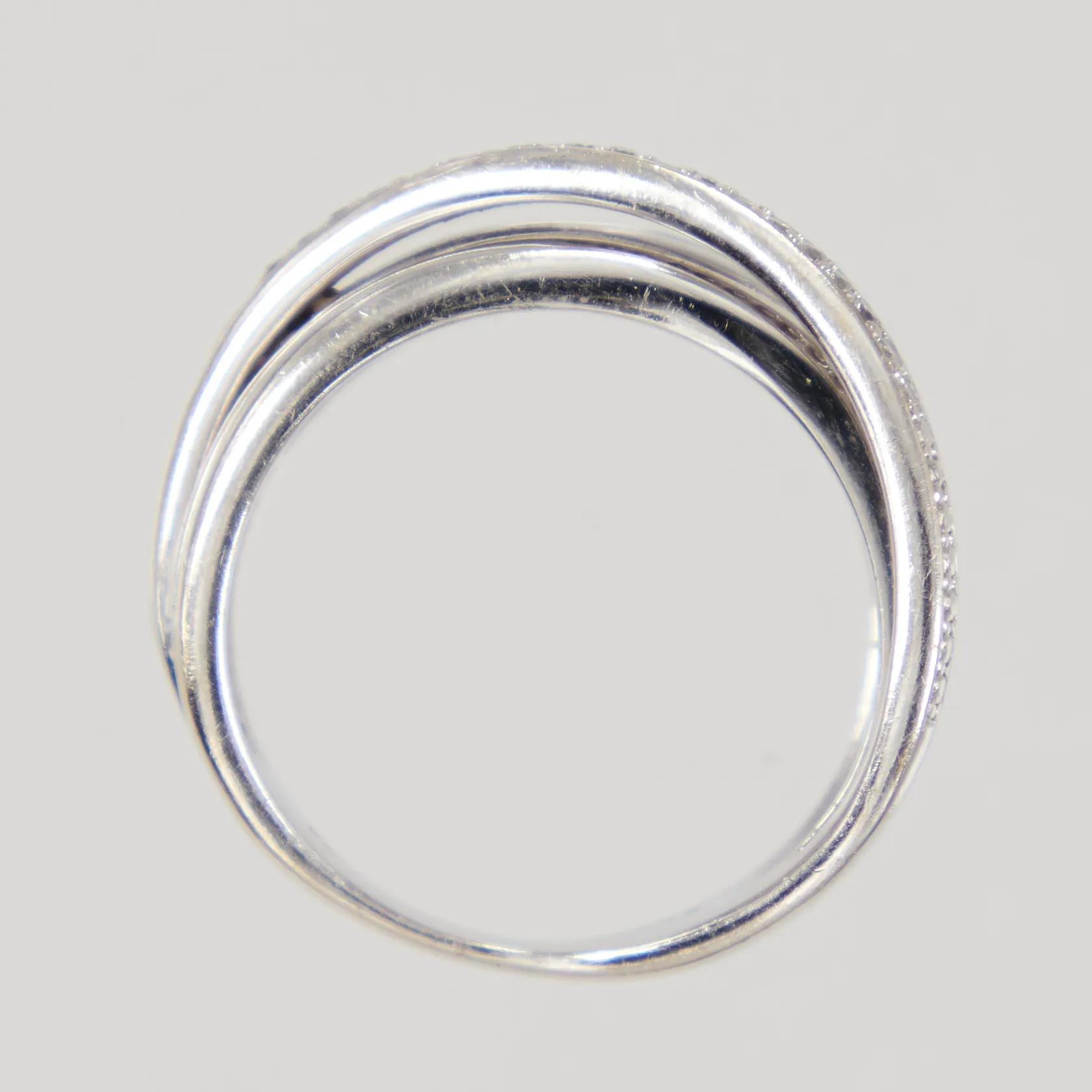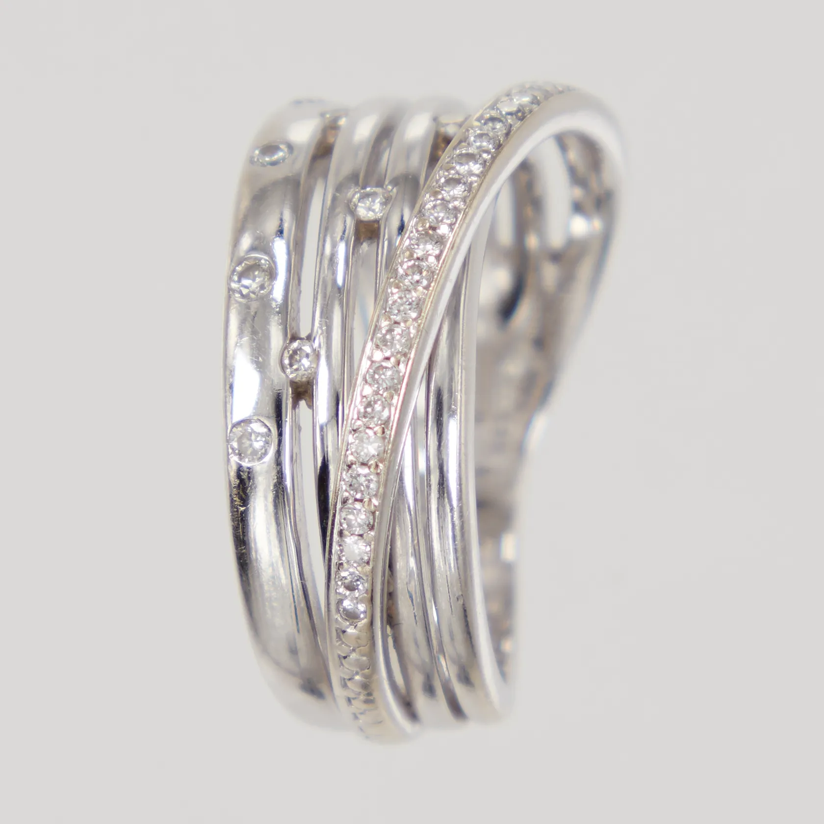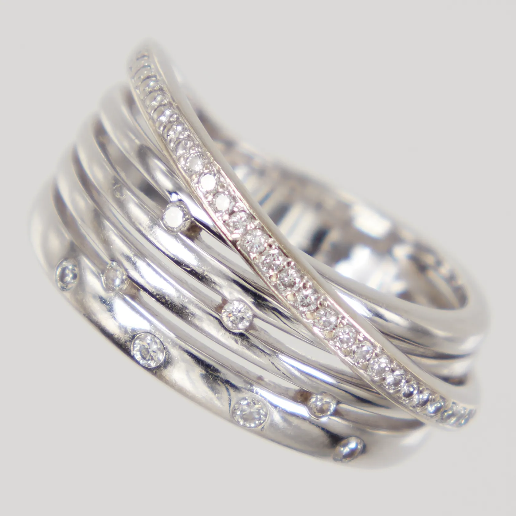 Ring stl 16½, bredd 4,4-10mm, 28st diamanter ca 0,005-0,02ct, totalt 0,20ct enligt gravyr, vitguld, 18K Vikt: 8 g.