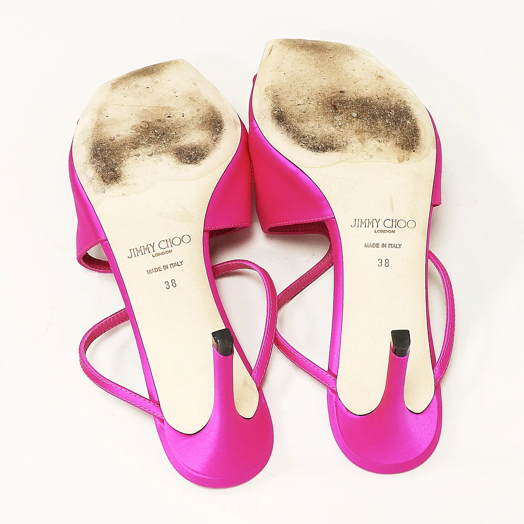 Skor Jimmy Choo Anise stl 38, satin, färg Fuschia, otydligt kvitto Jimmy Choo butik 2023, dustbag, kartong.