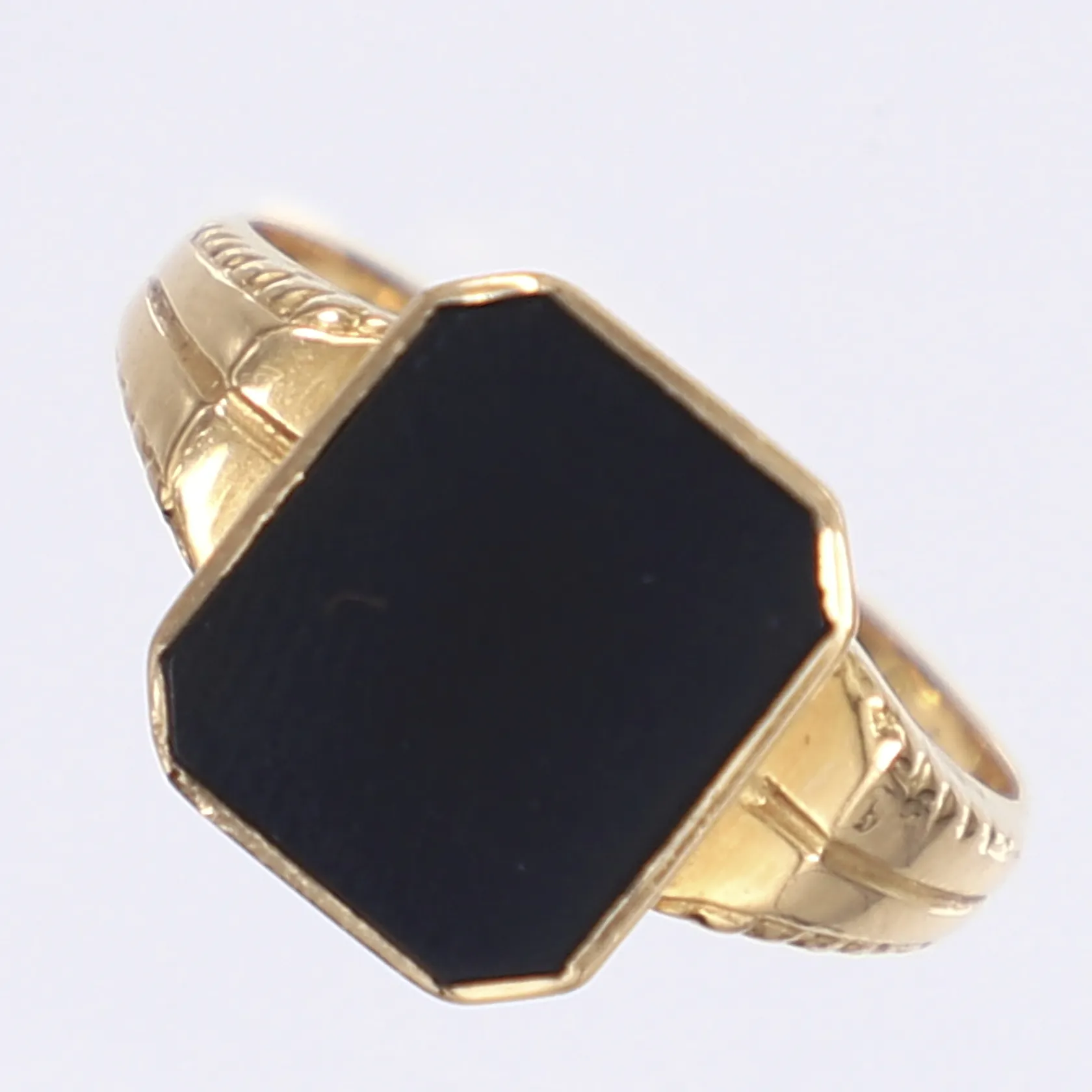 Ring med svart sten stl 17½ bredd 2-12mm 18K Bruttovikt: 3,8g Vikt: 3,8 g.