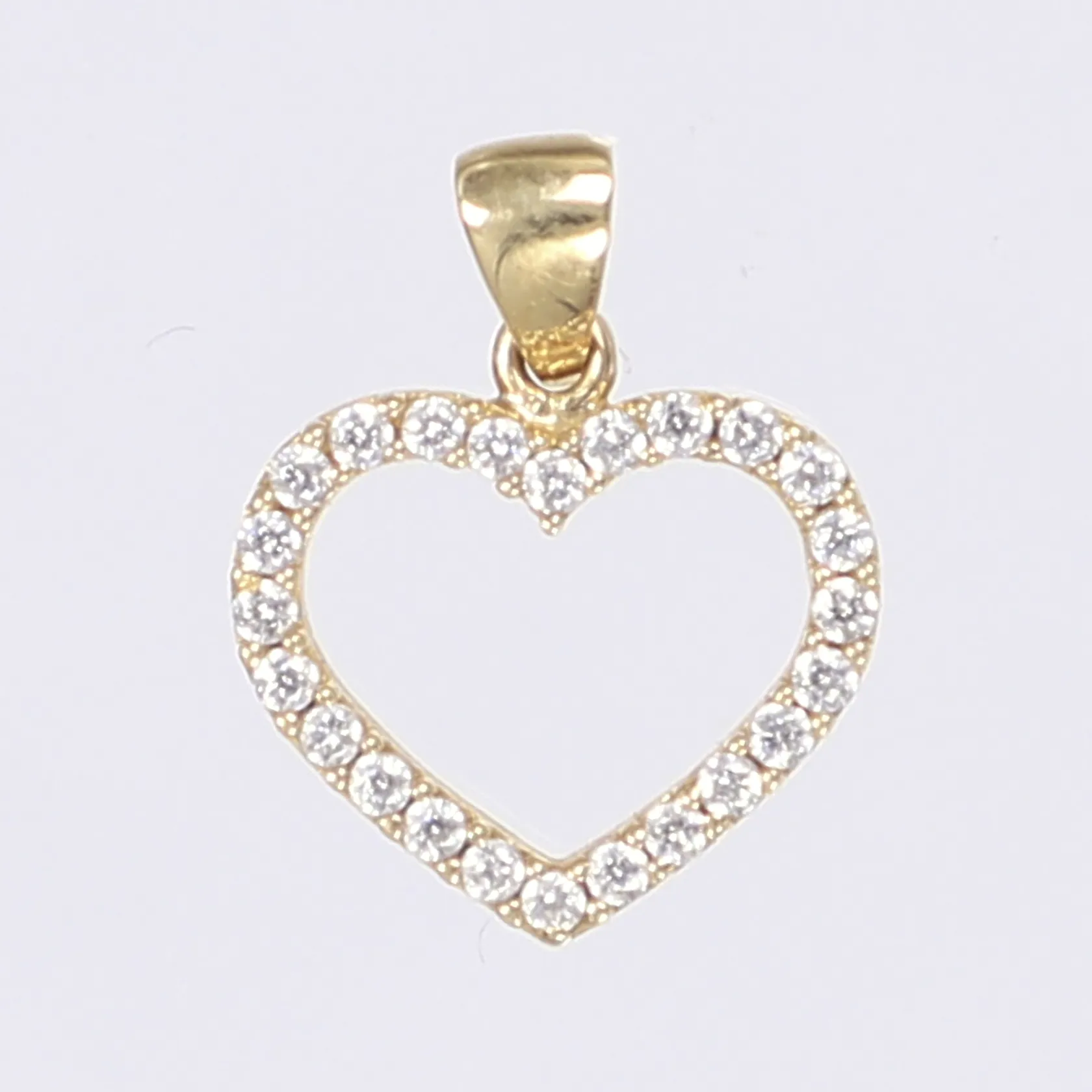 Hänge hjärta med vita stenar längd inkl ögla 15mm bredd 12mm 18K Vikt: 0,9 g.