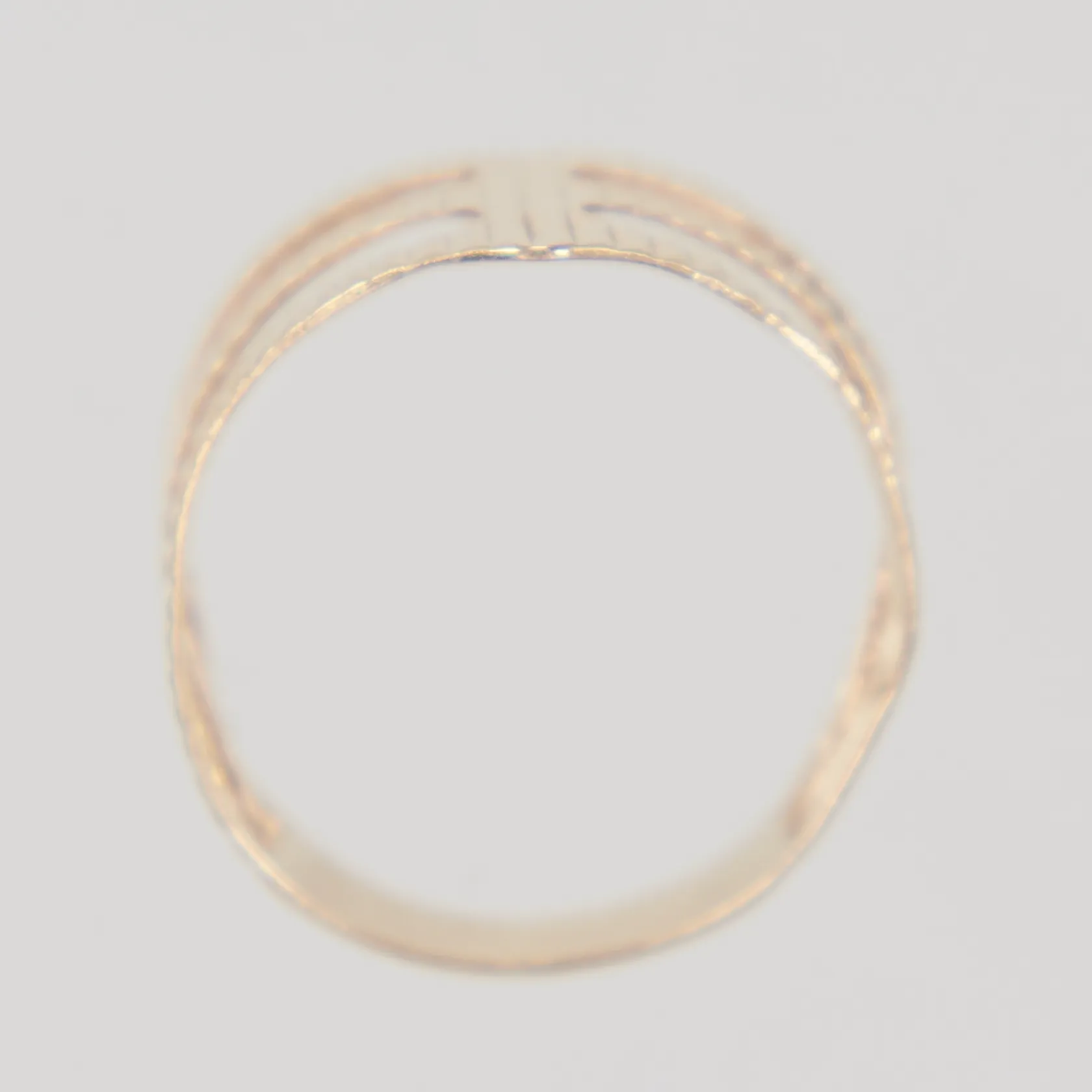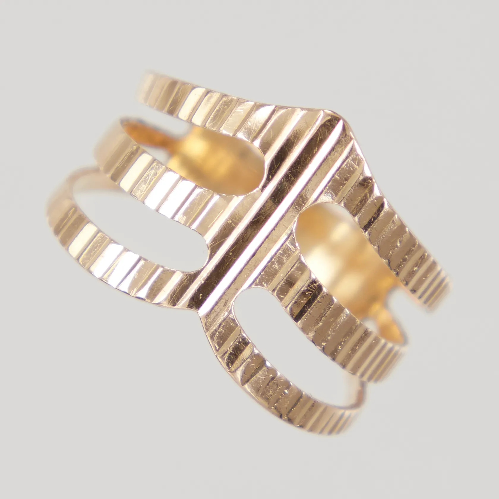 Ring stl 16¼, bredd 4-11mm, genombruten dekor, 18K Vikt: 1,9 g.