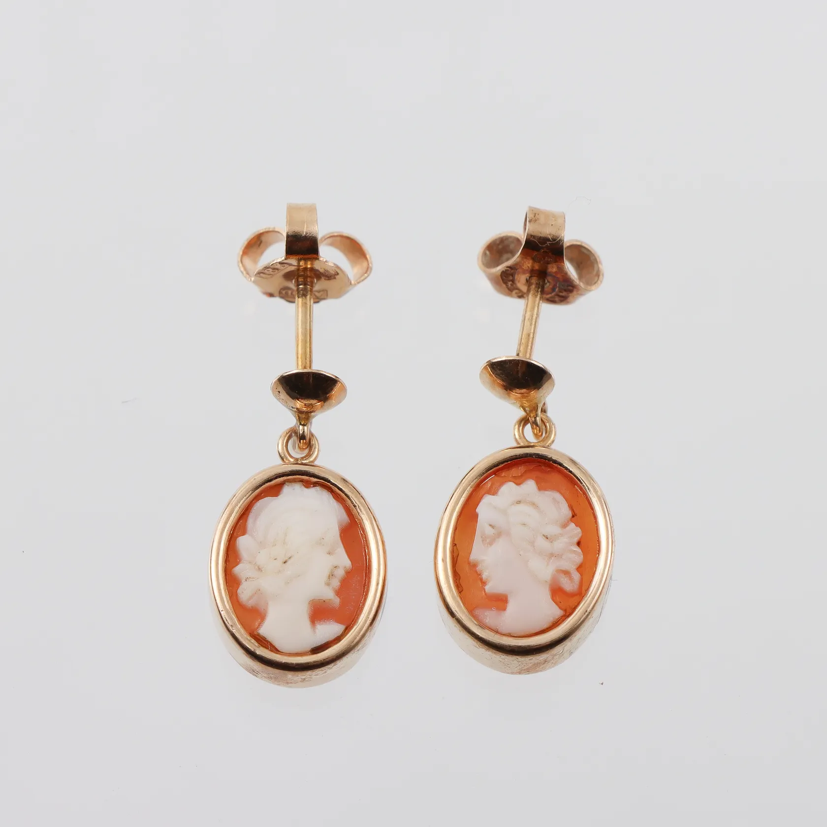 Parörhängen med came, höjd ca 11mm, ett lås saknas, 18k Vikt: 2,4 g.
