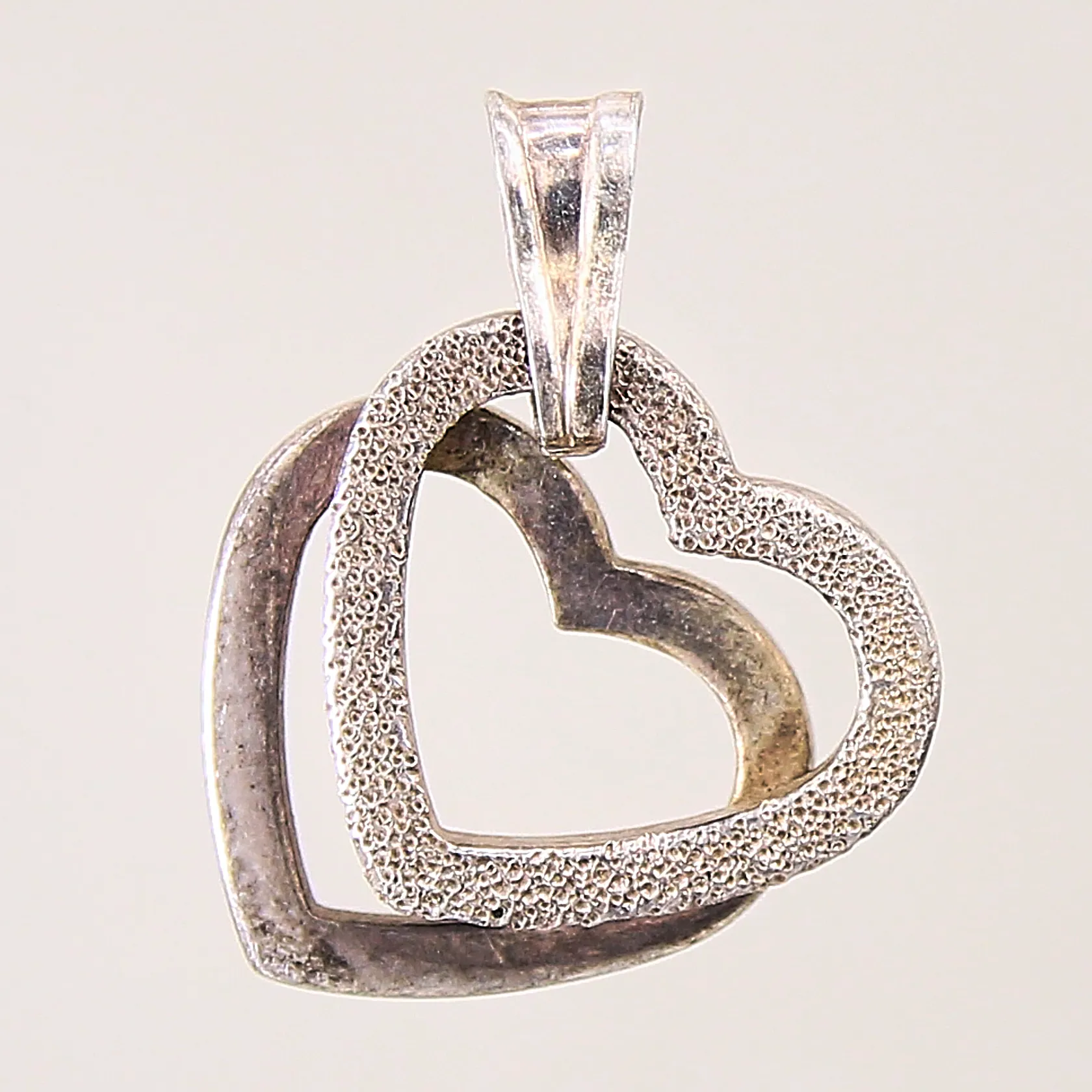 Hänge dubbelhjärta, längd 2,5cm, bredd 17-11mm, bucklig ögla, silver 925/1000 Vikt: 3,7 g.