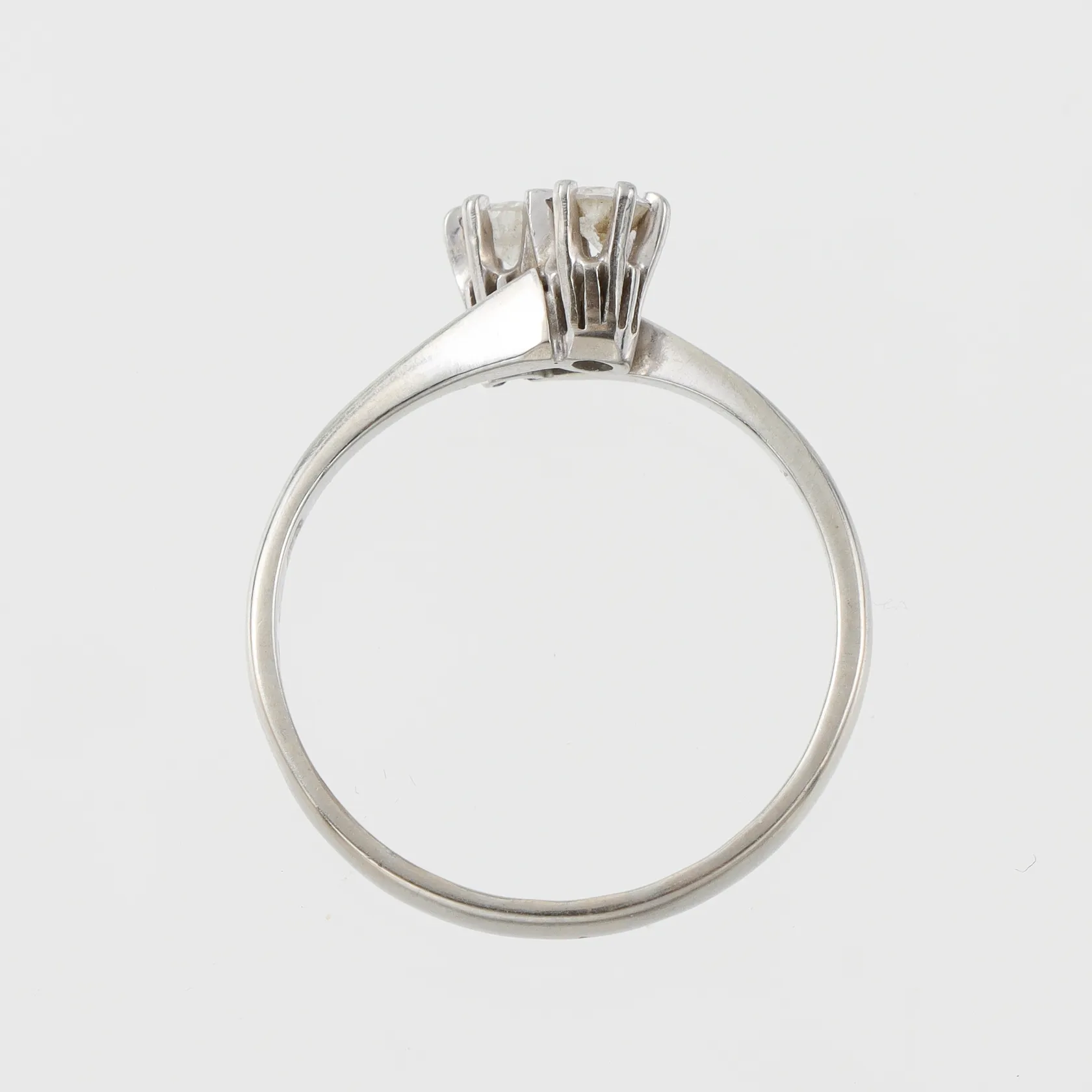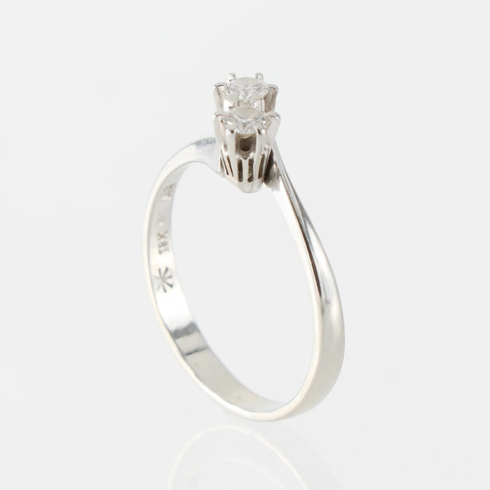 Syskonring vitguld med 2 st diamanter på totalt 0.22 ct enligt inskription, storlek 17 mm, bredd 2.5-5.5 mm, 18k. Vikt: 2,3 g.
