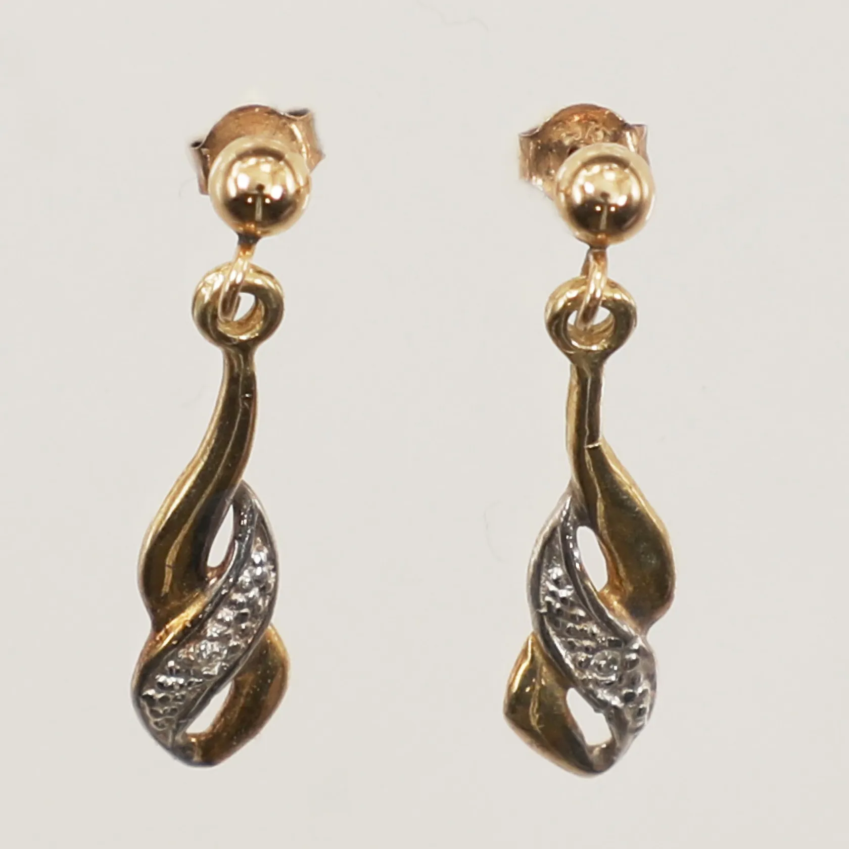 Ett par örhängen med stenar, ca 18mm, bredd 4,4mm, 9K Vikt: 0,8 g.