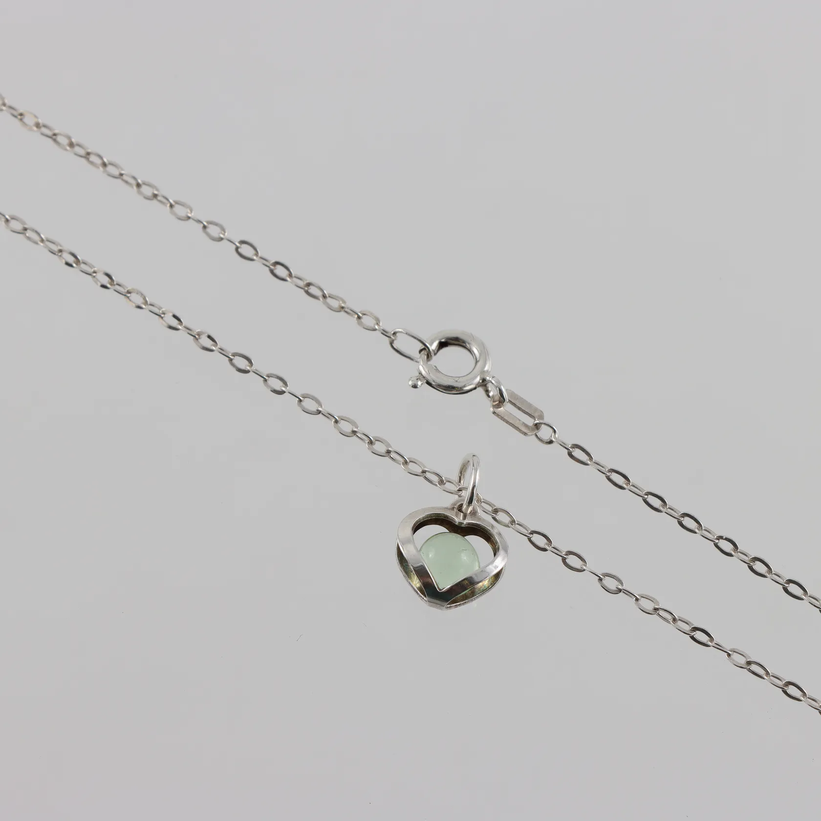 Kedja 40cm med hänge hjärta ljusgrön sten, silver Vikt: 1,8 g.
