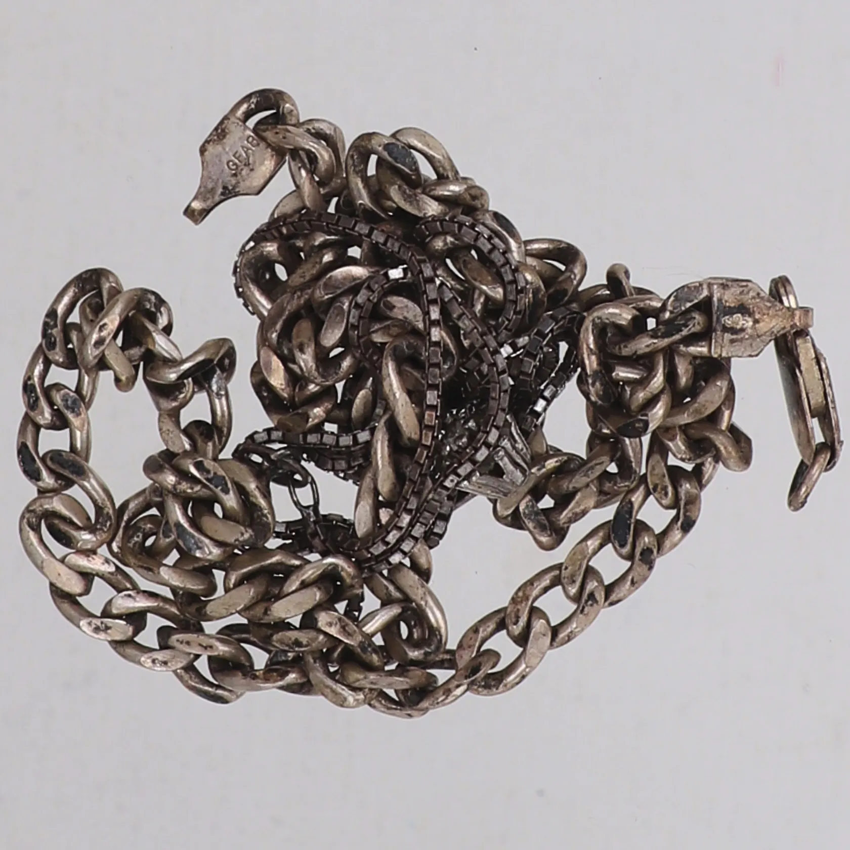 Två kedjor, ett hänge, defekt, silver 830/1000 Vikt: 29,5 g.
