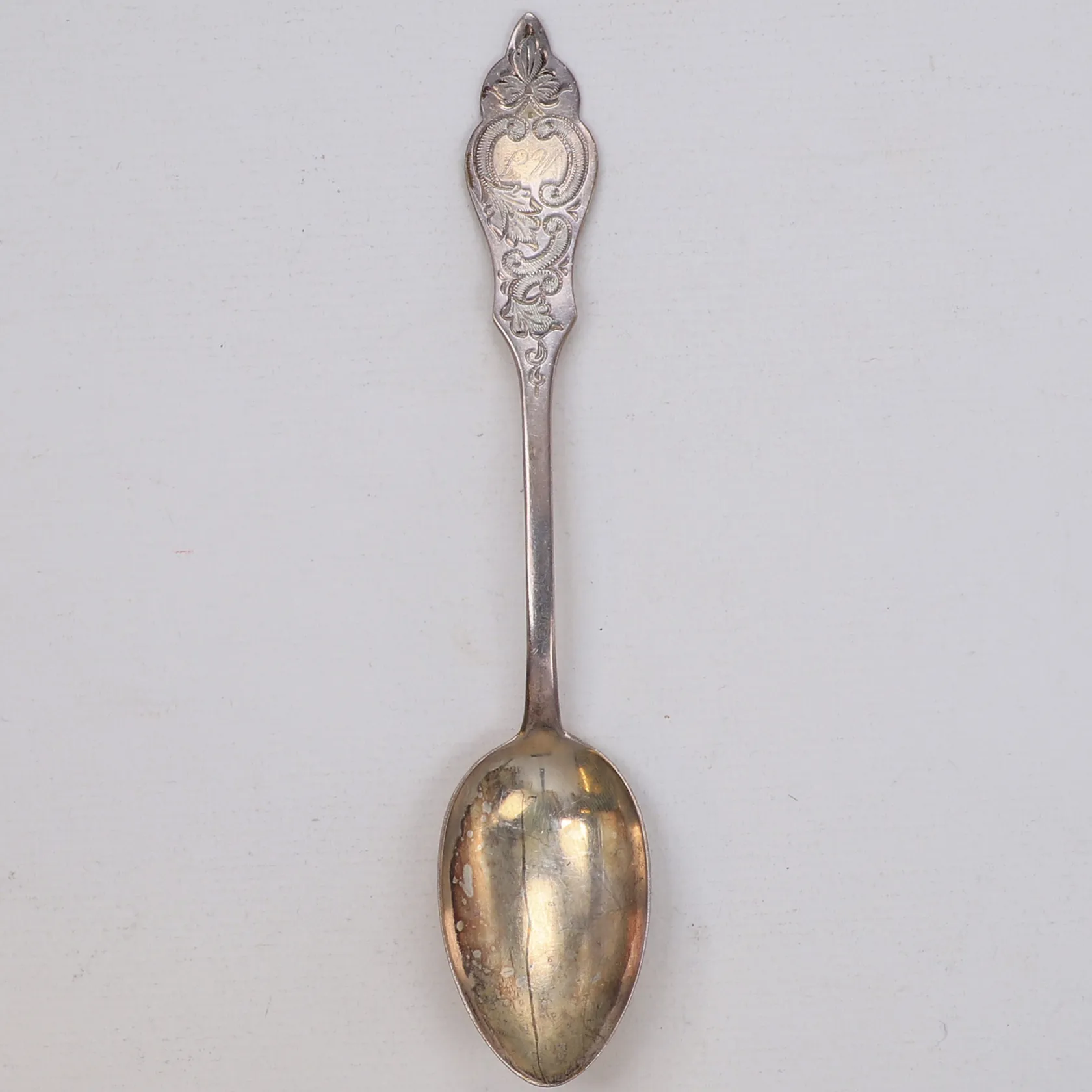 Sked, längd 16cm, tyska stämplar, personlig gravyr, 800/1000 silver Vikt: 31 g.