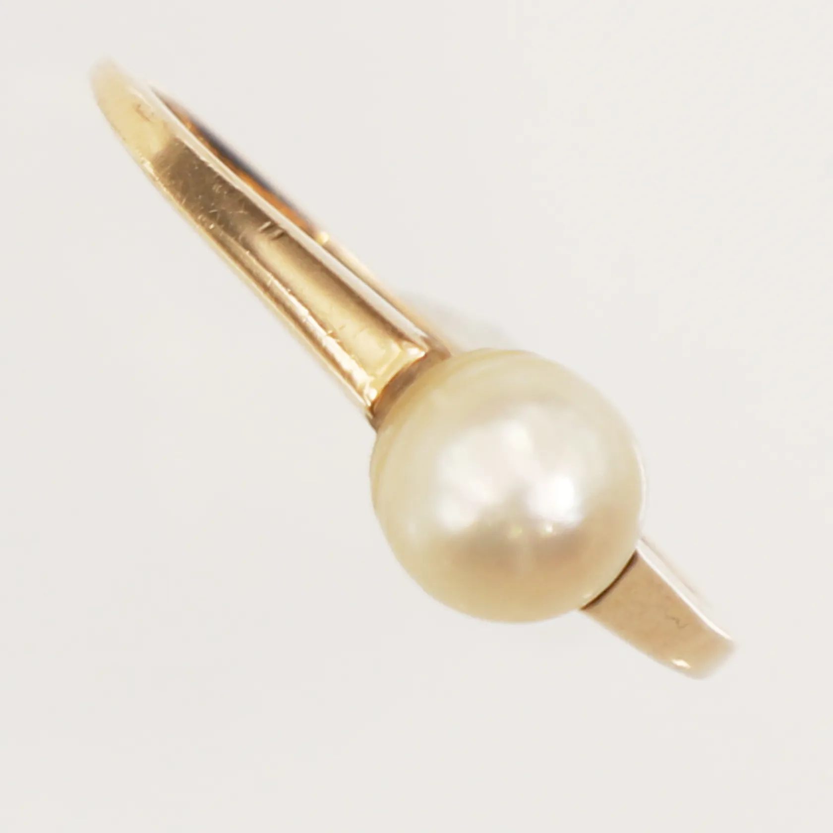 Ring med pärla, stl 18¼, bredd 0,9-5,9mm, 18K Vikt: 2,1 g.