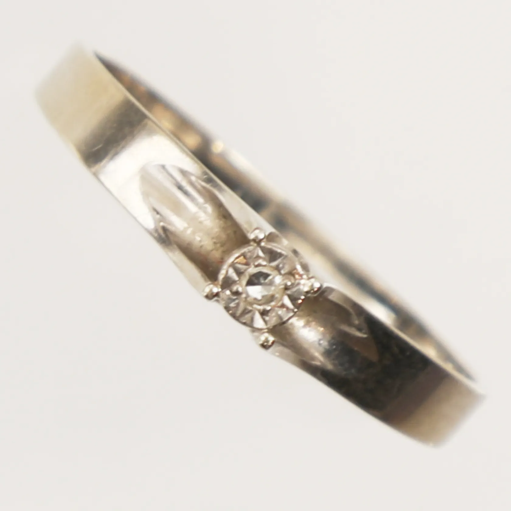 Ring med diamant, ca 0,02ct, stl 19¼, bredd 2-3,1mm, vitguld, 18K Vikt: 2 g.