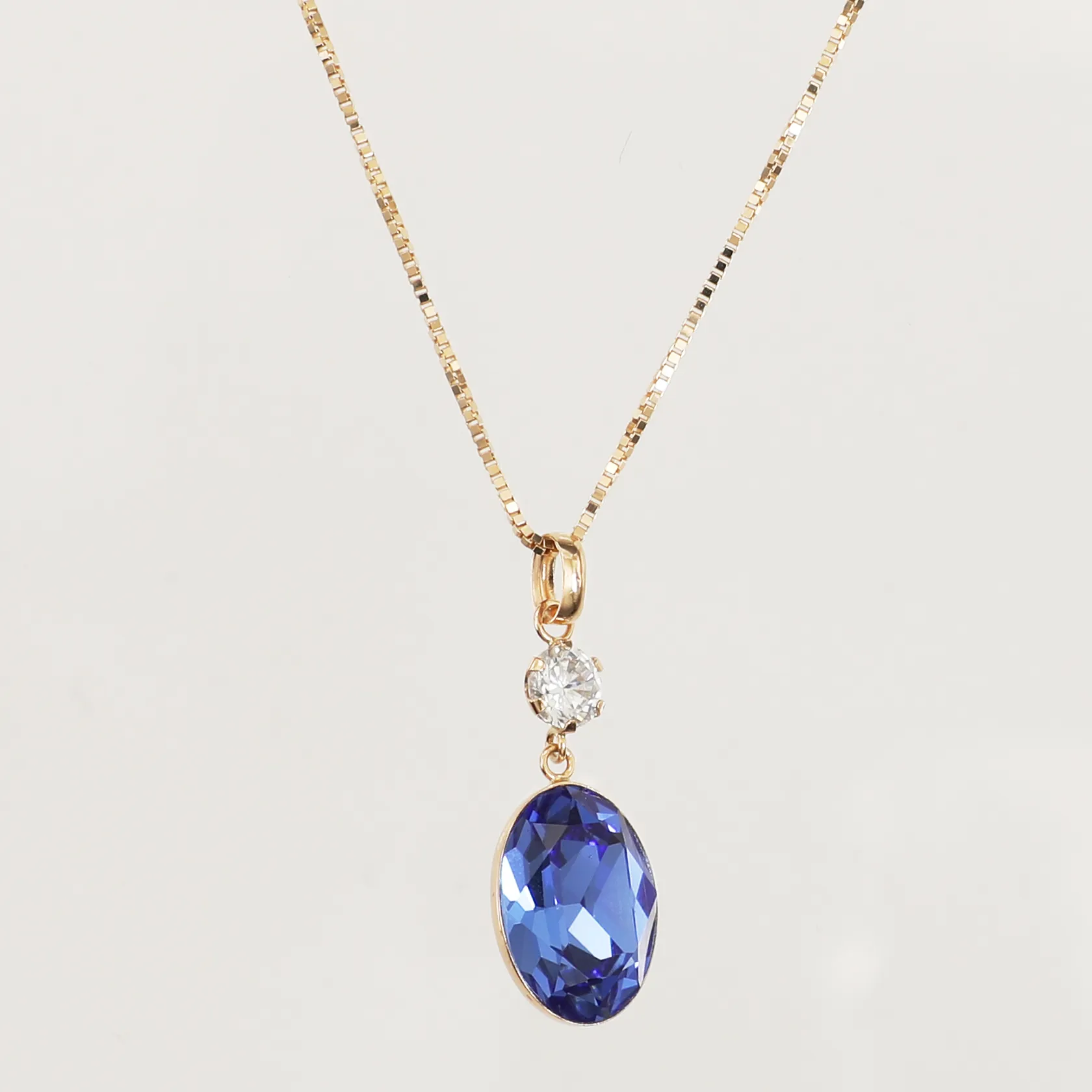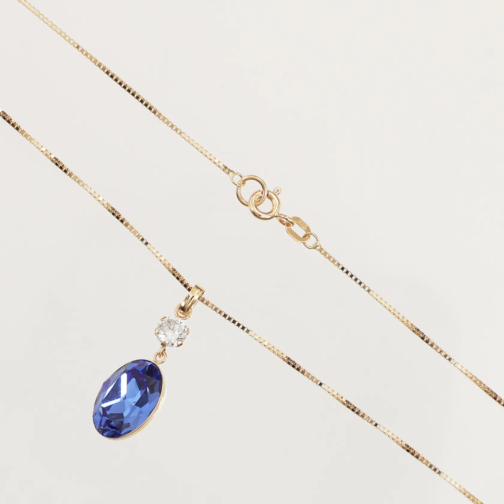 Kedja Venezia, längd 46cm, bredd 1mm, hänge med blå samt vit sten, längd 30mm, bredd 10,5mm, 18K Vikt: 4,3 g.